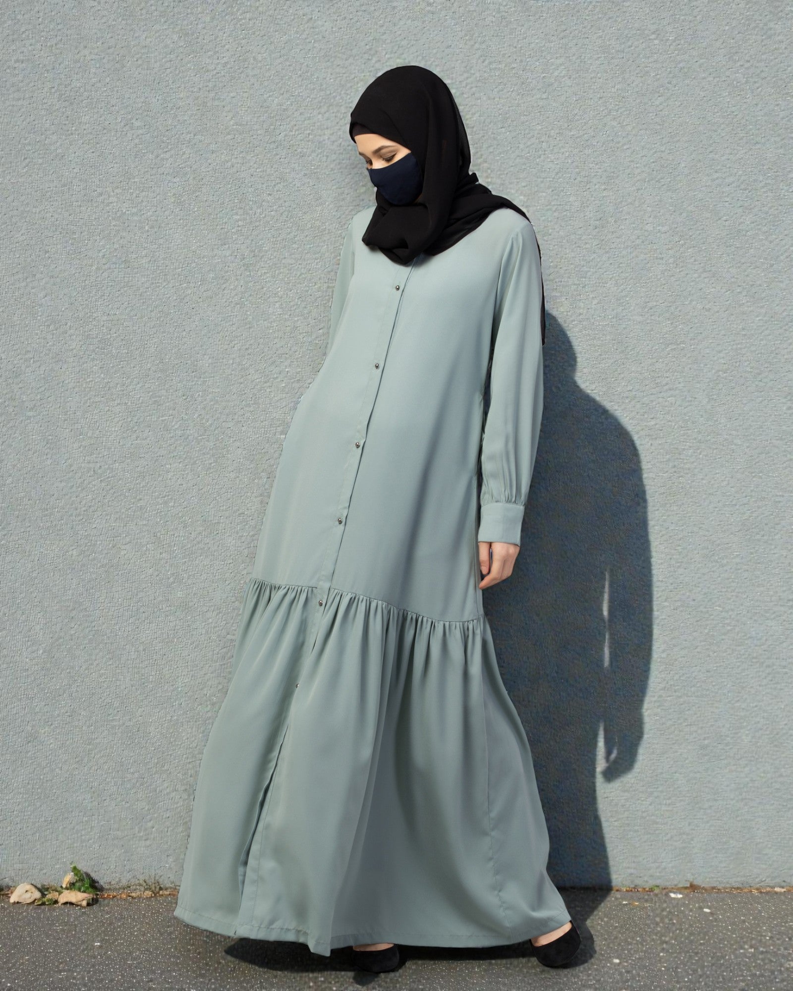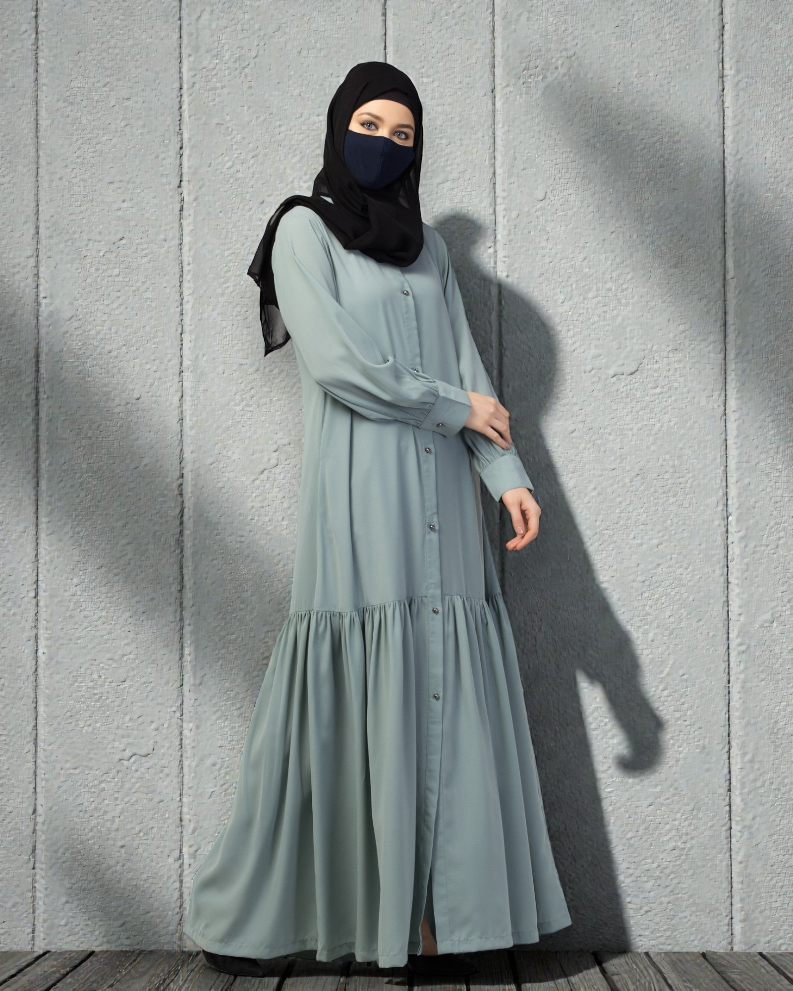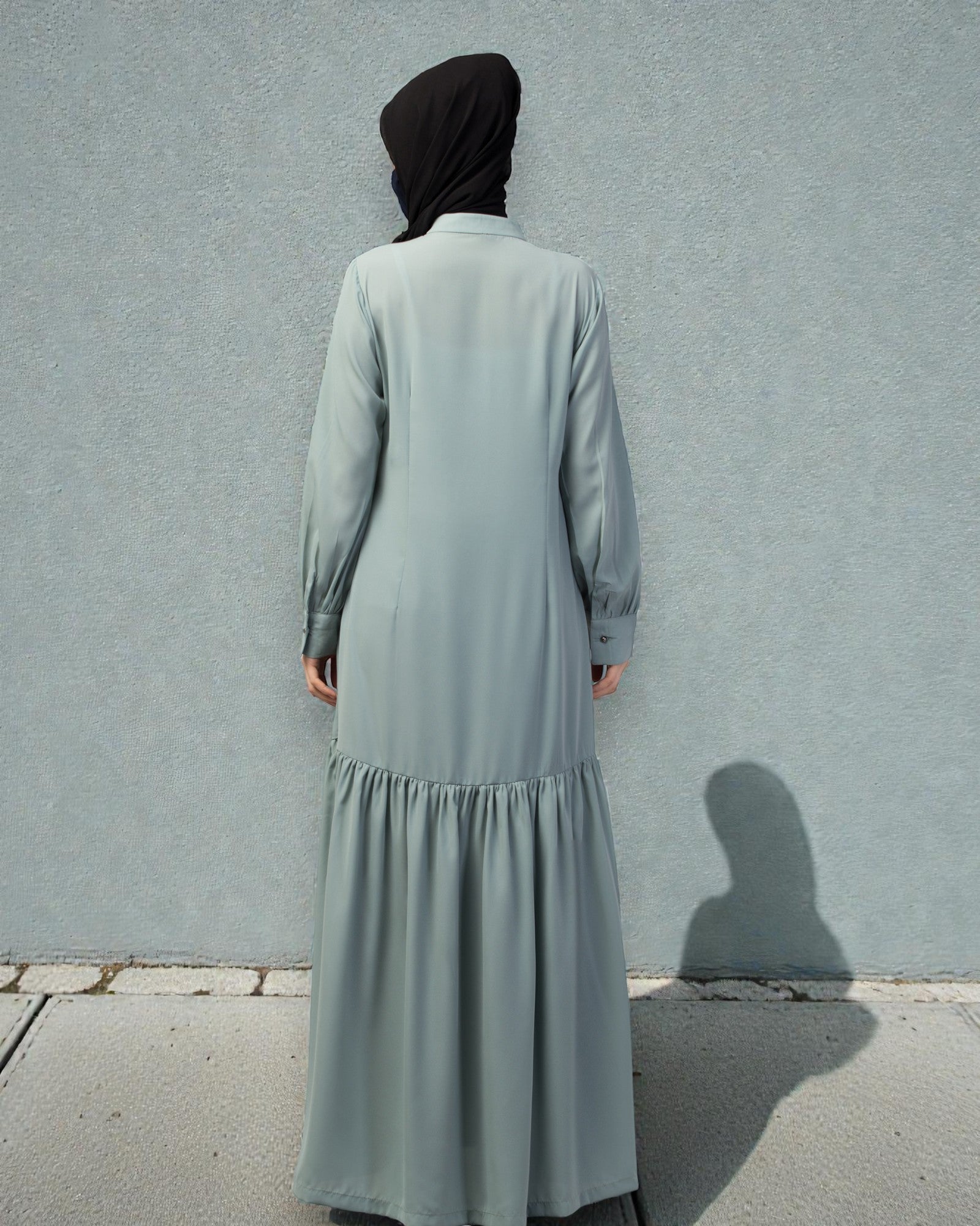 Front Open Abaya Dress with Gathered Layer