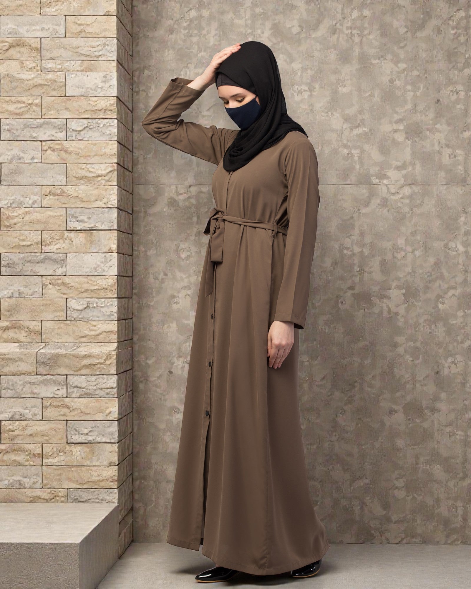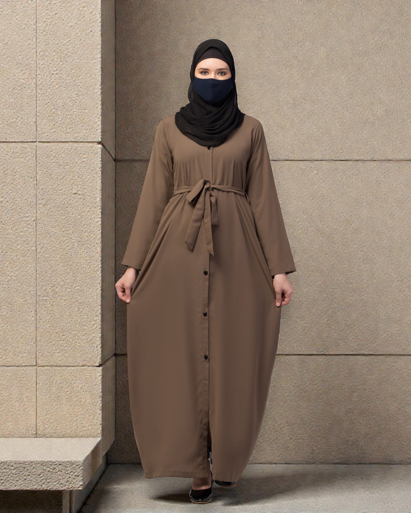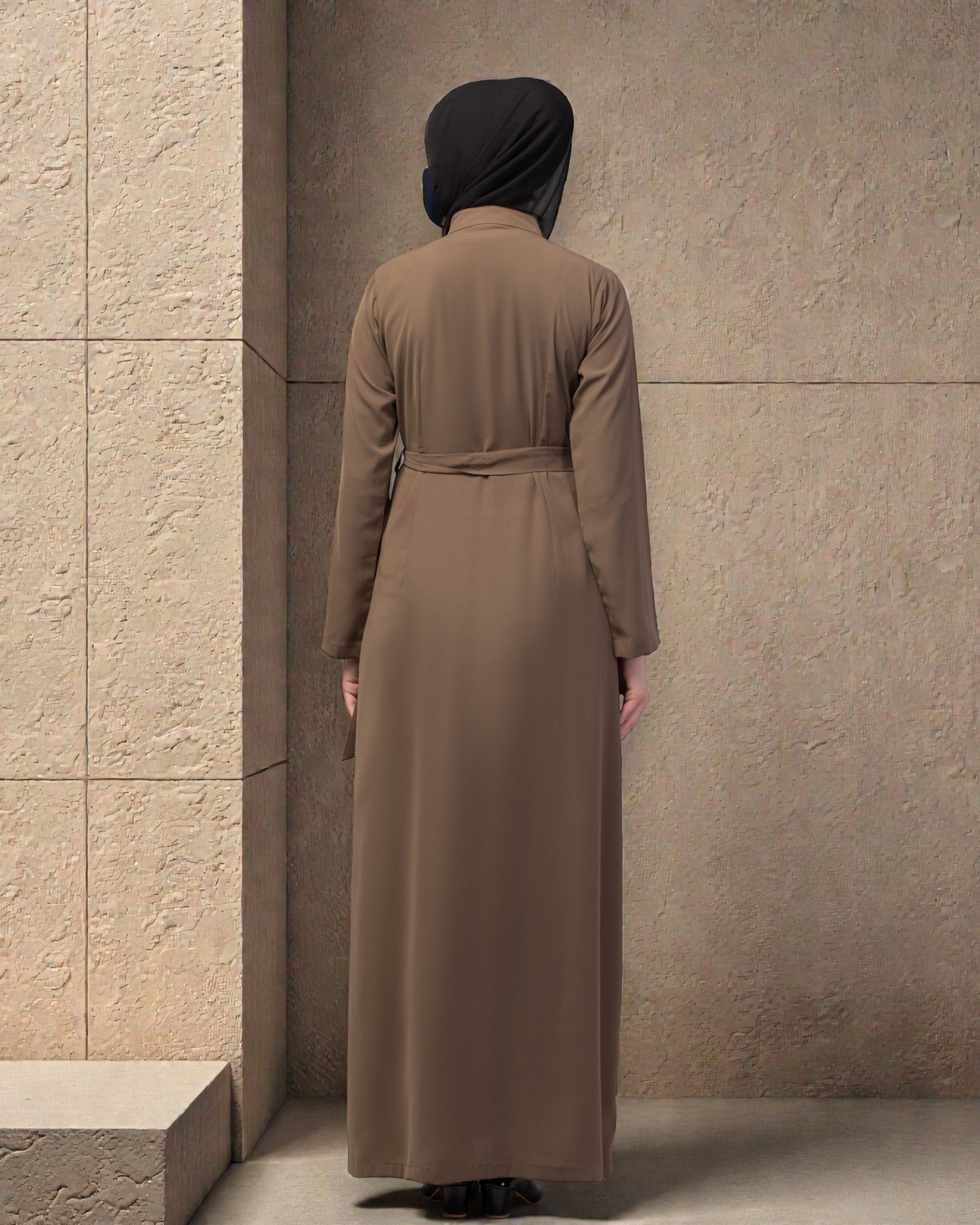 Stylish Front Open Abaya with Matching Fabric Belt