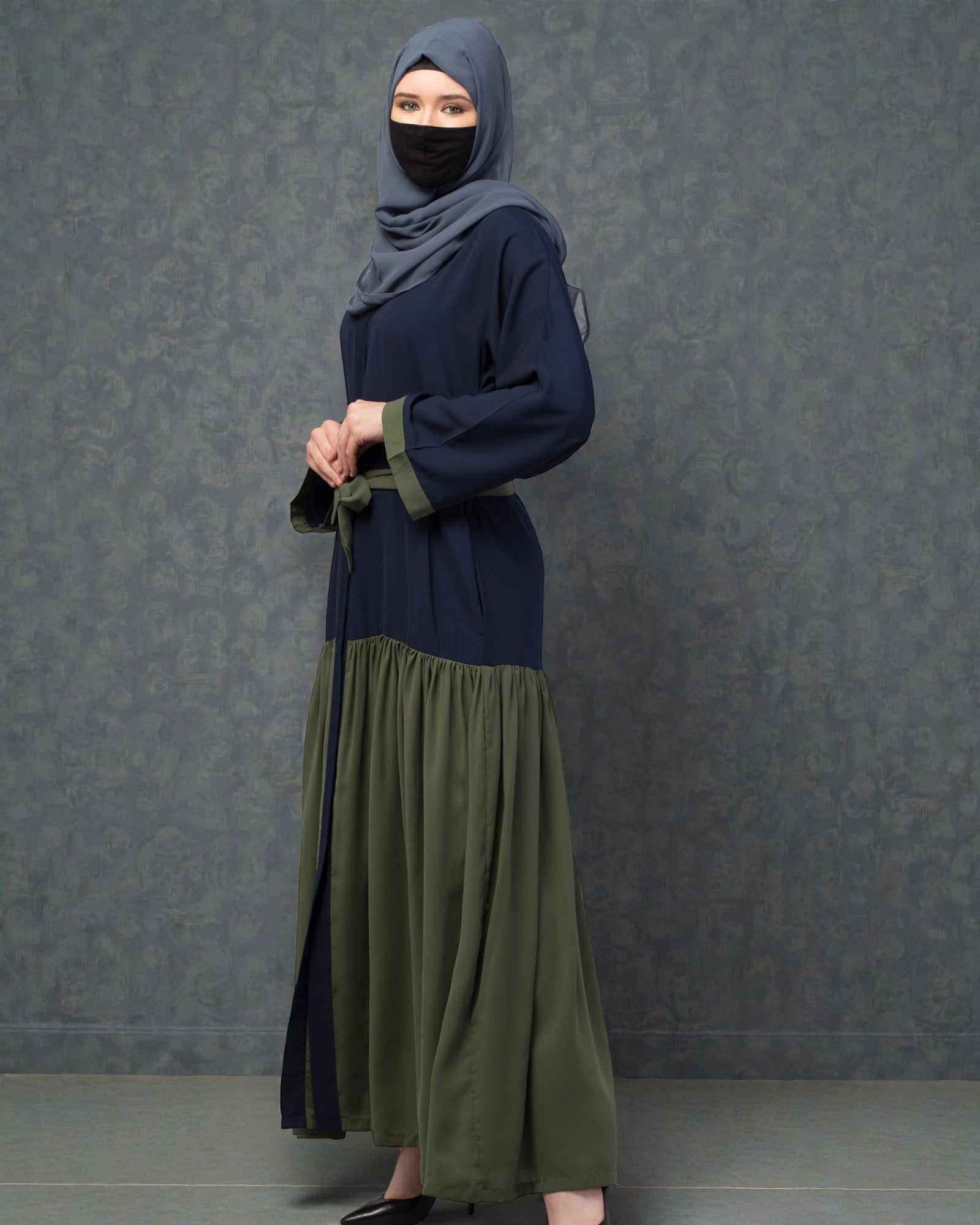 Arabian Front Open Abaya in Dual Color with Matching Belt
