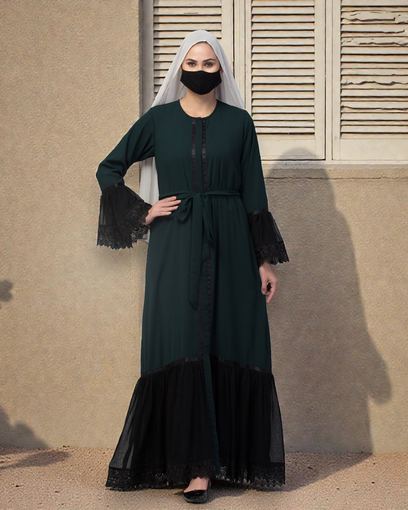 Front Open Abaya Like Dress With Lace work and layers of Georgette