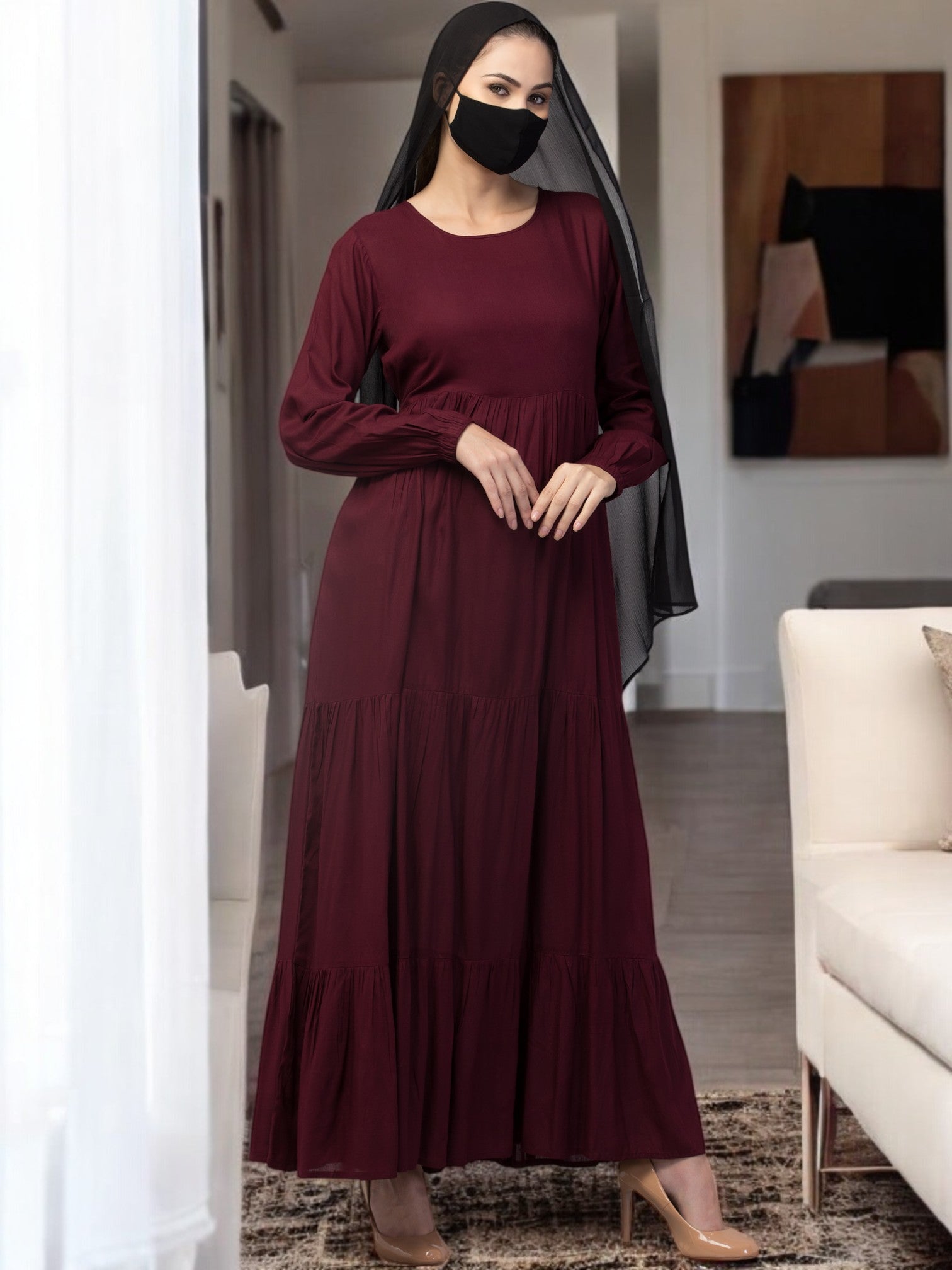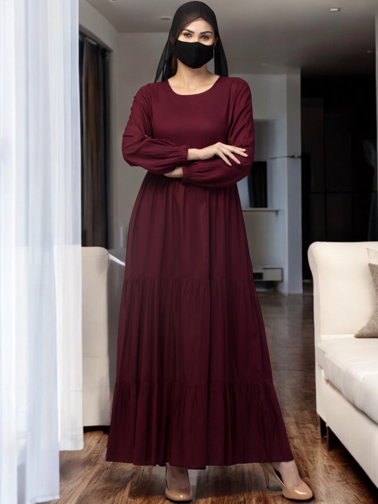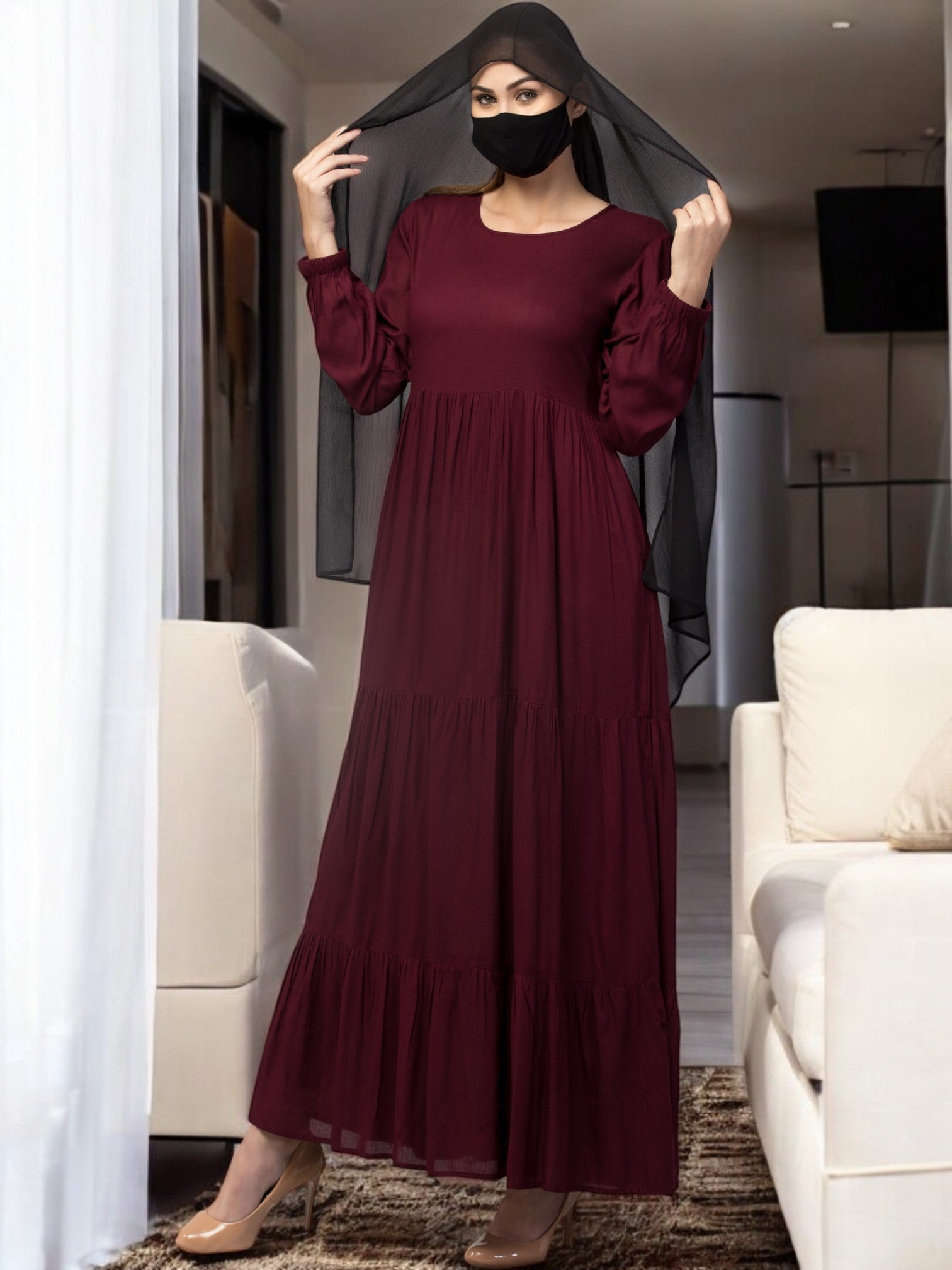 Multi Layered- Maxi Dress With Elasticated Sleeves