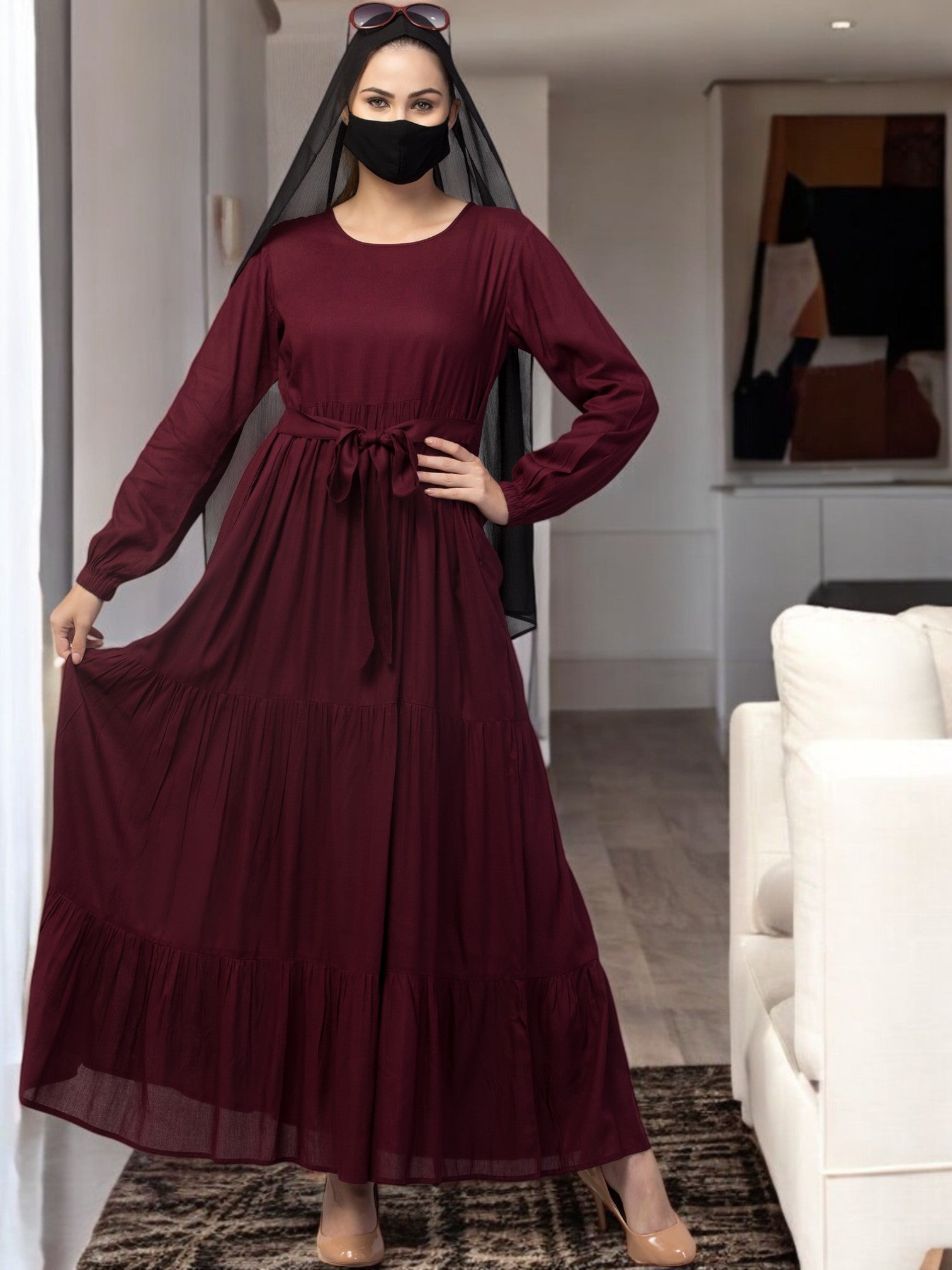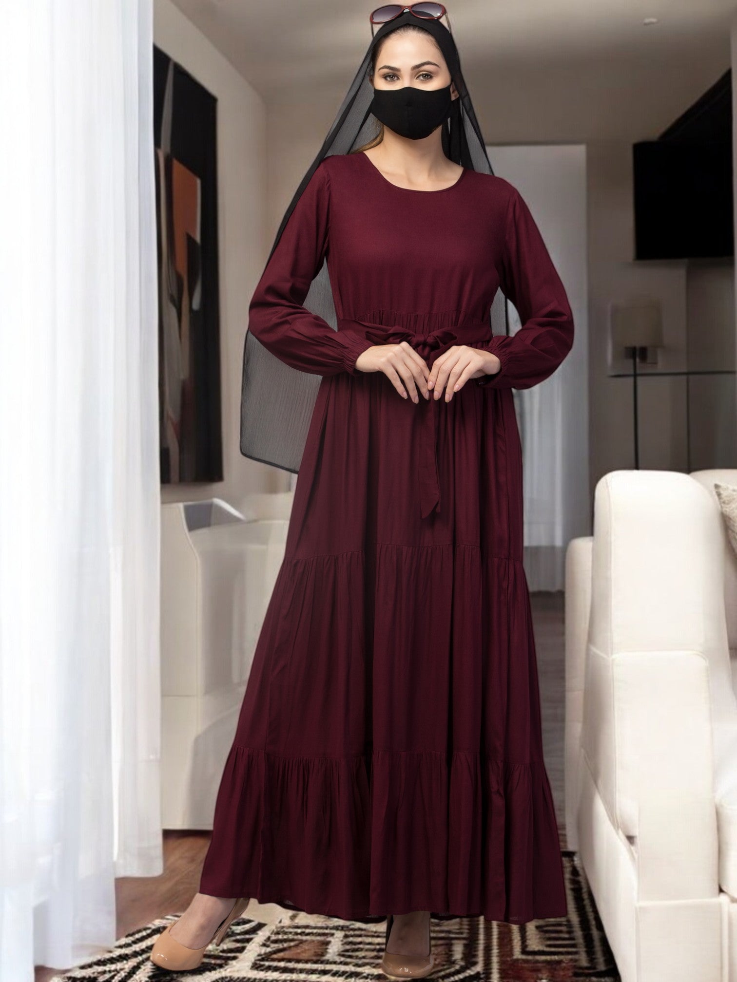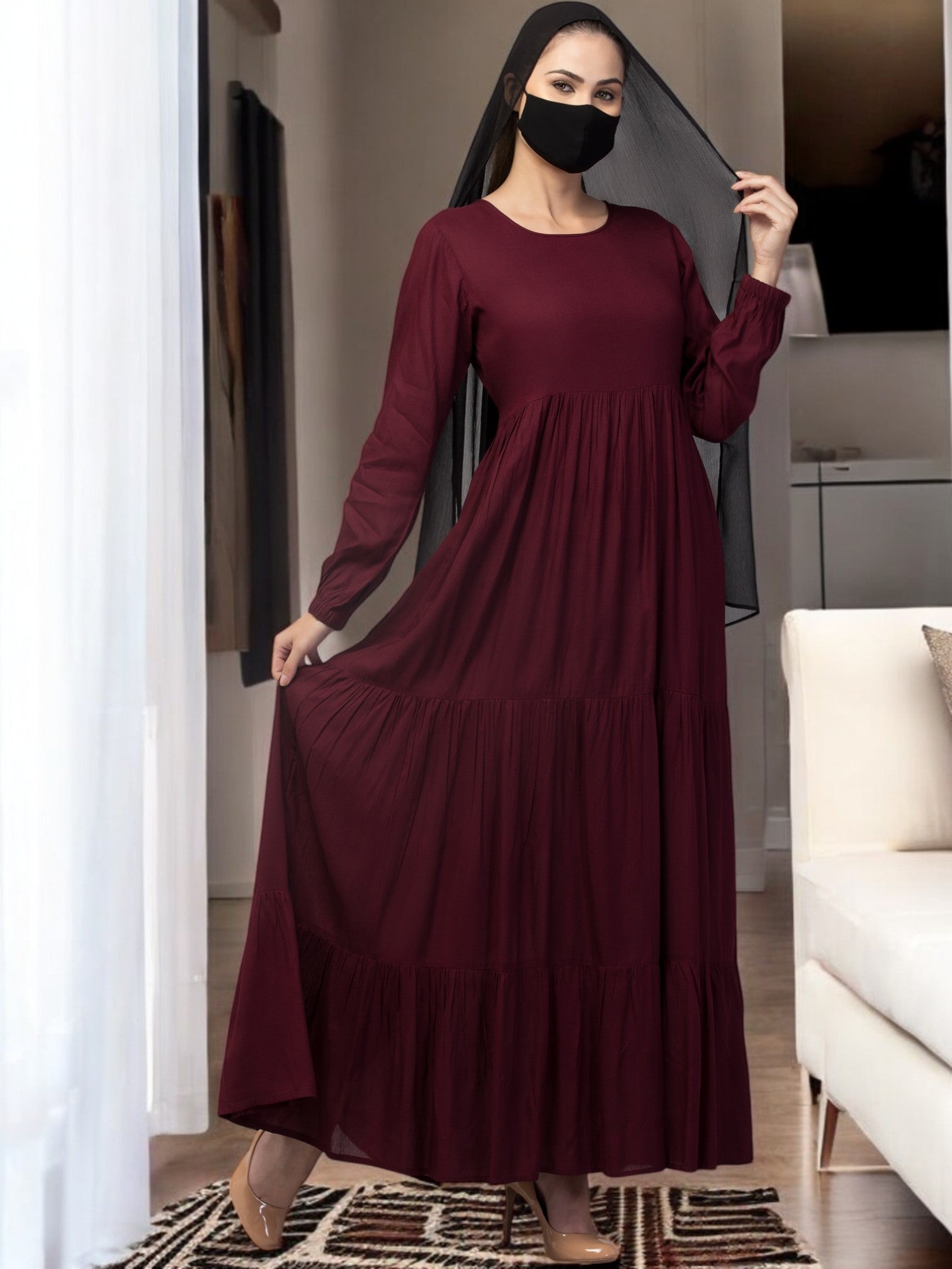 Multi Layered- Maxi Dress With Elasticated Sleeves