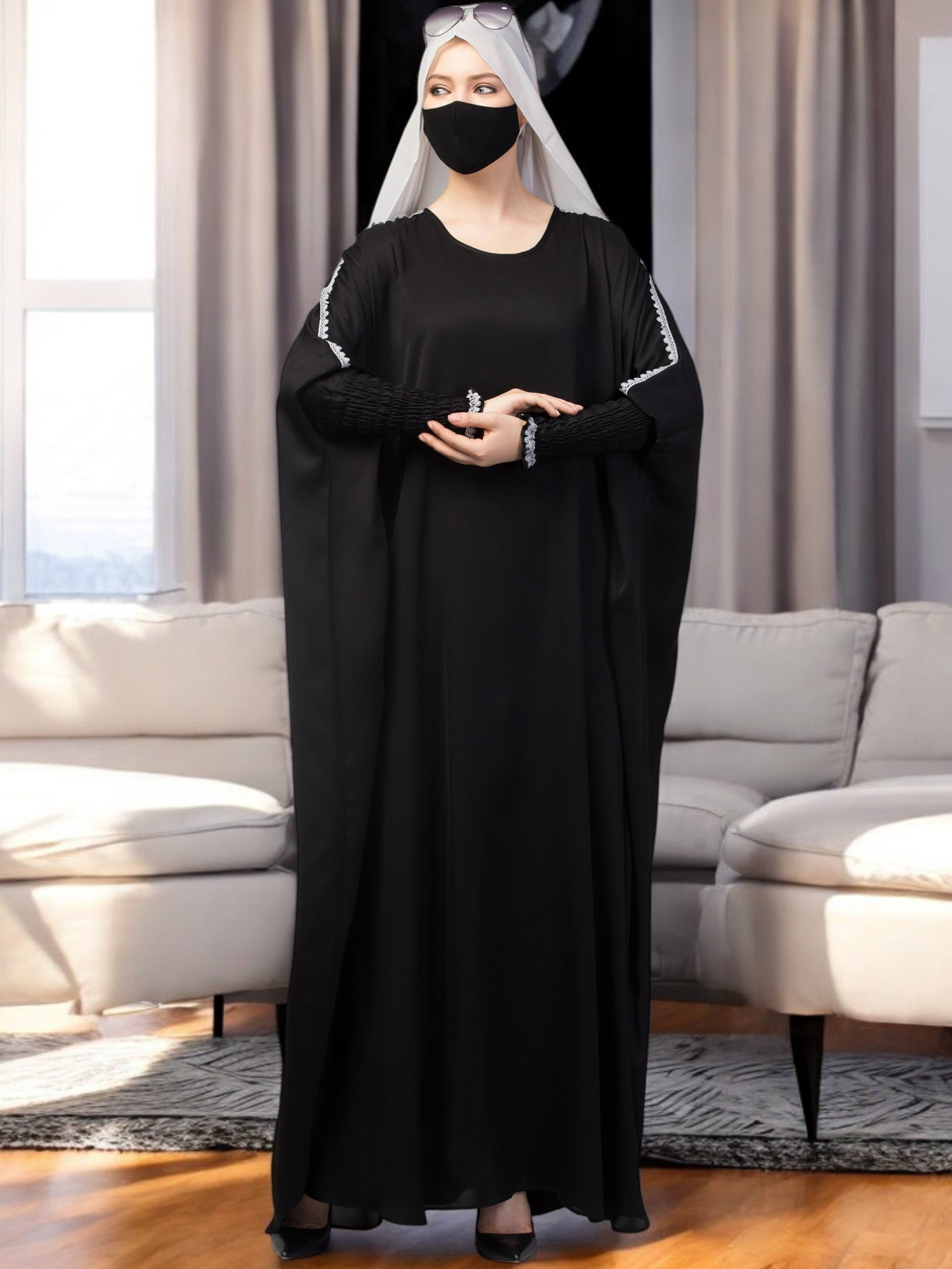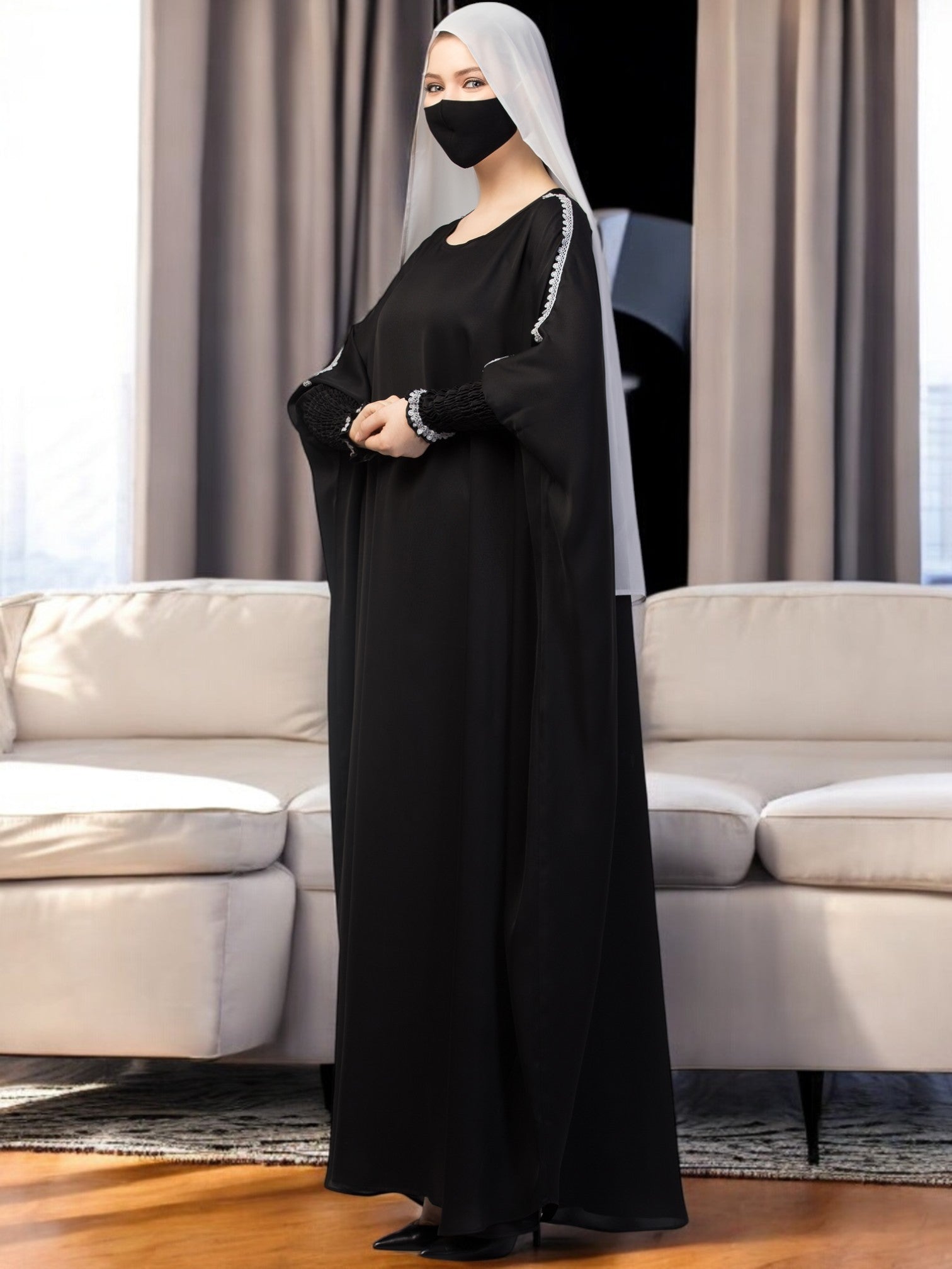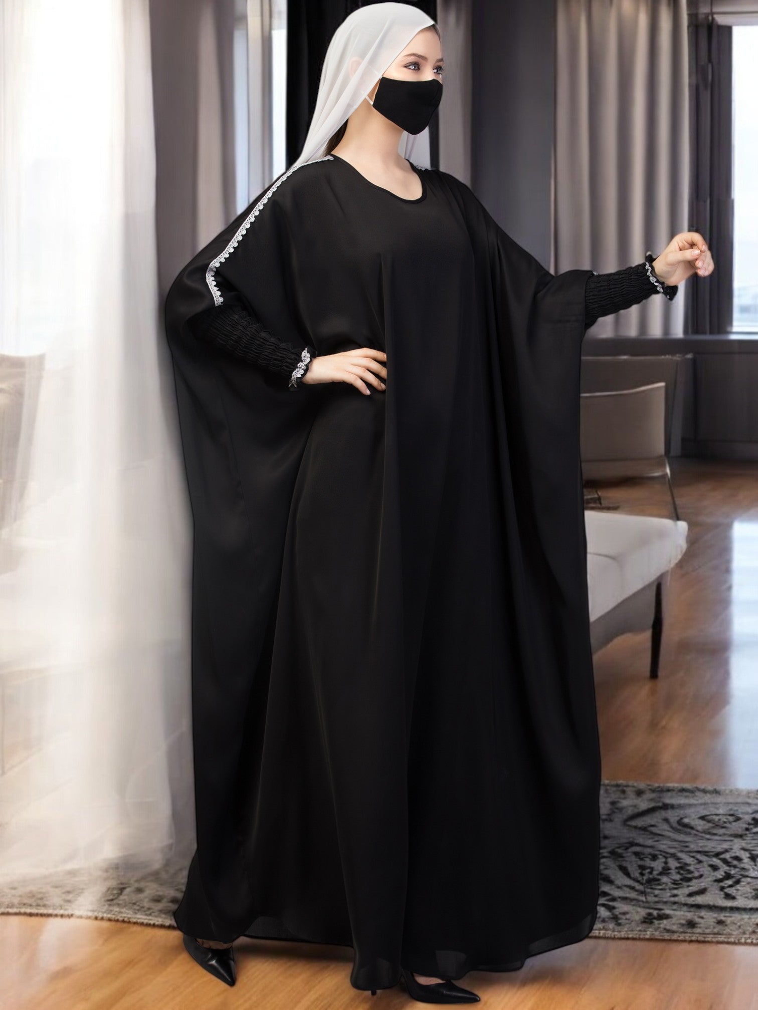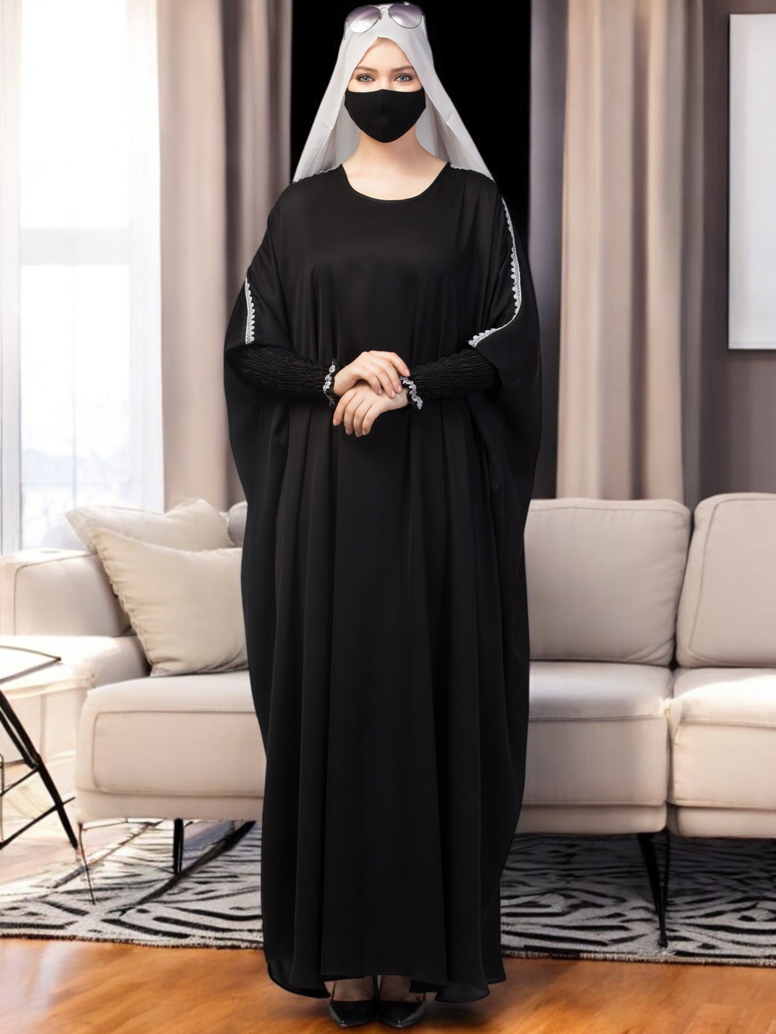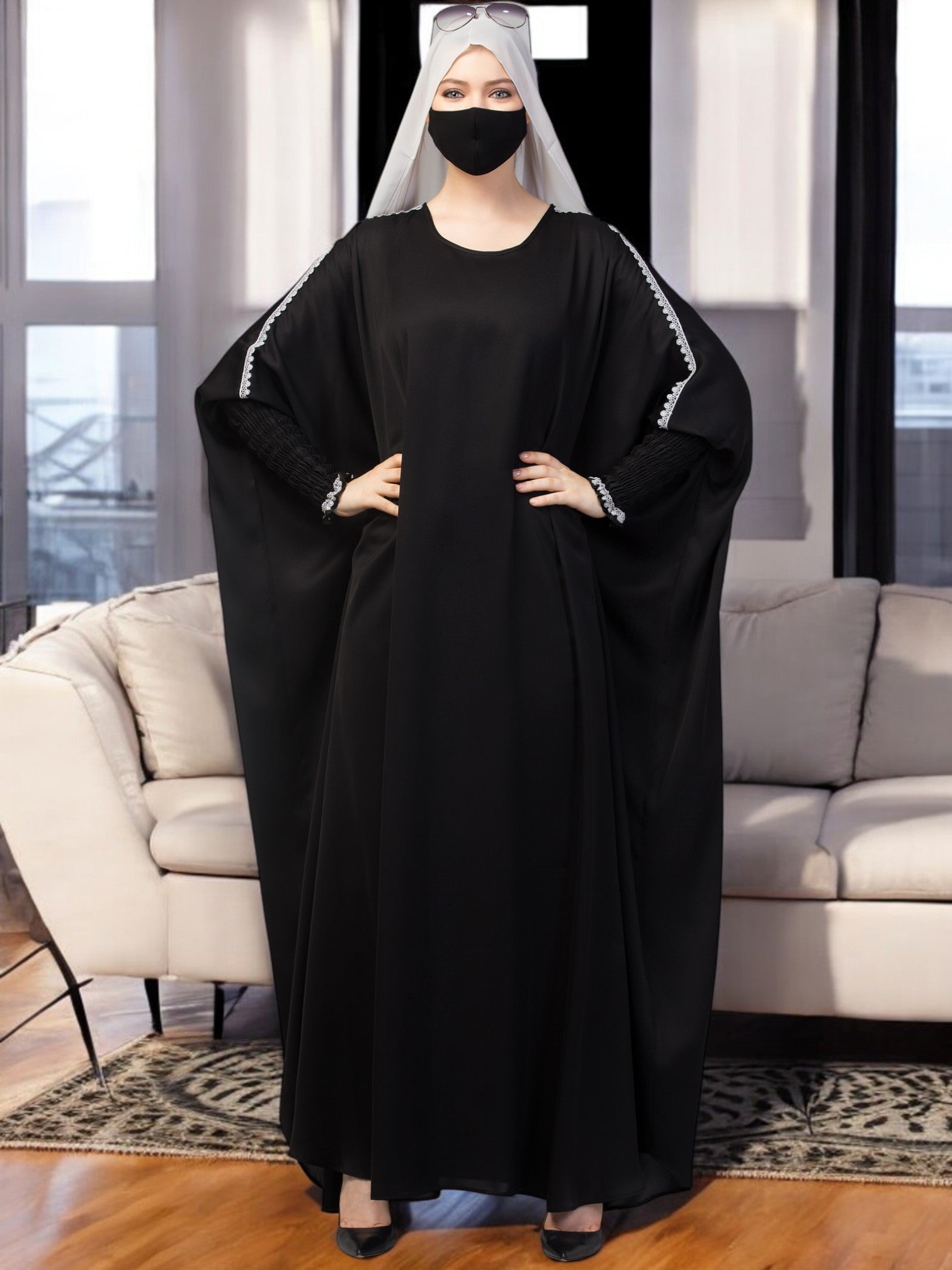 Free Size Kaftan Abaya With Lacework. Perfect for dailywear.