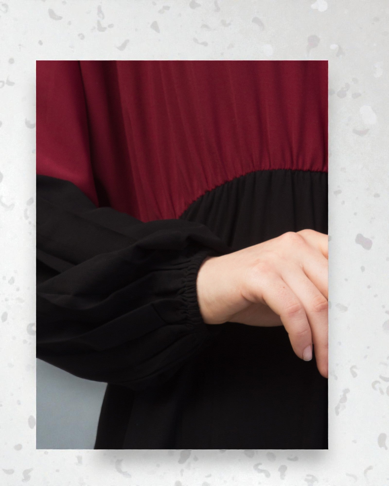 A dual-colored abaya with elasticated balloon sleeves is a must-have in your wardrobe.