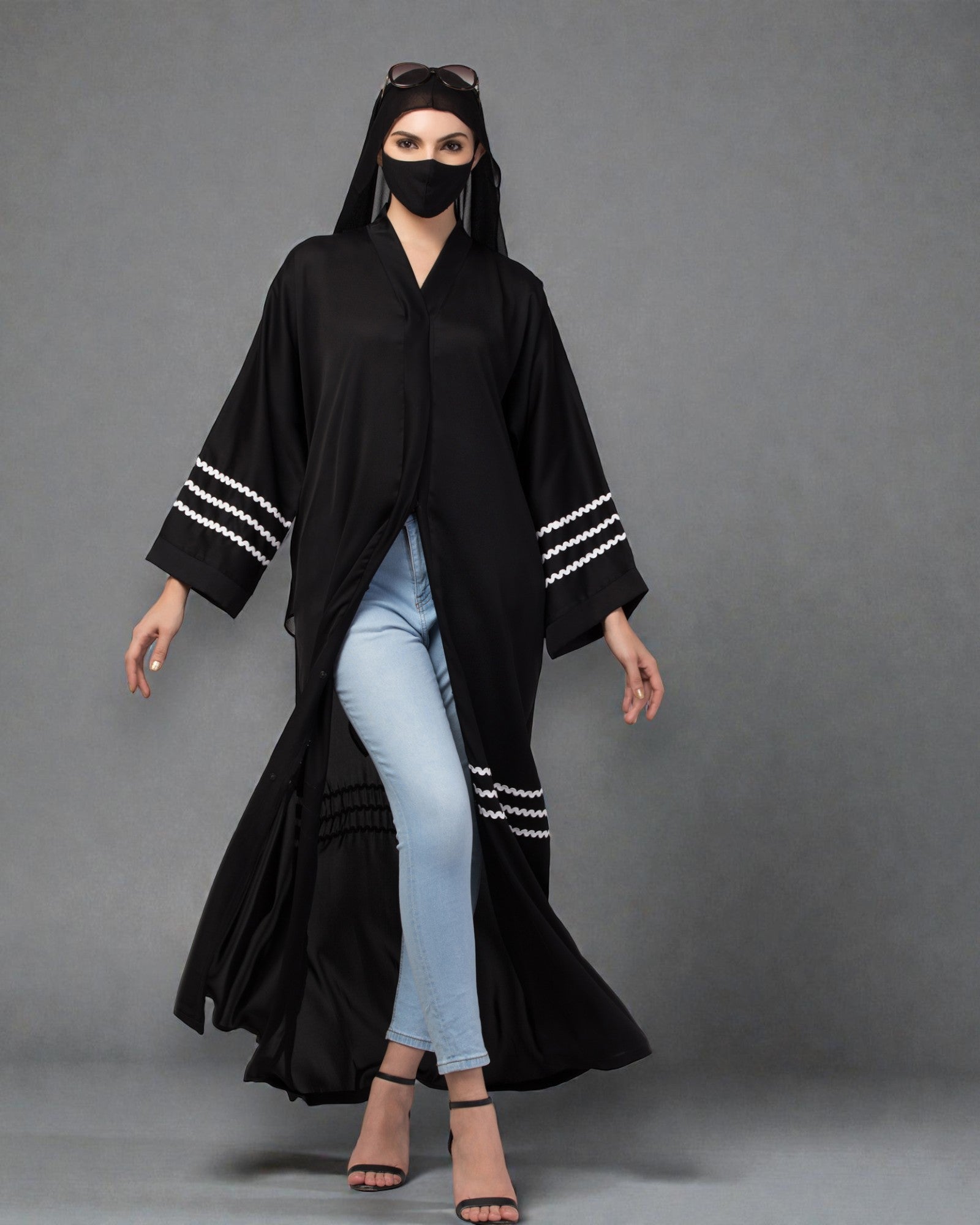 Front Open Abaya made with Nida Fabric for a luxurious feel.