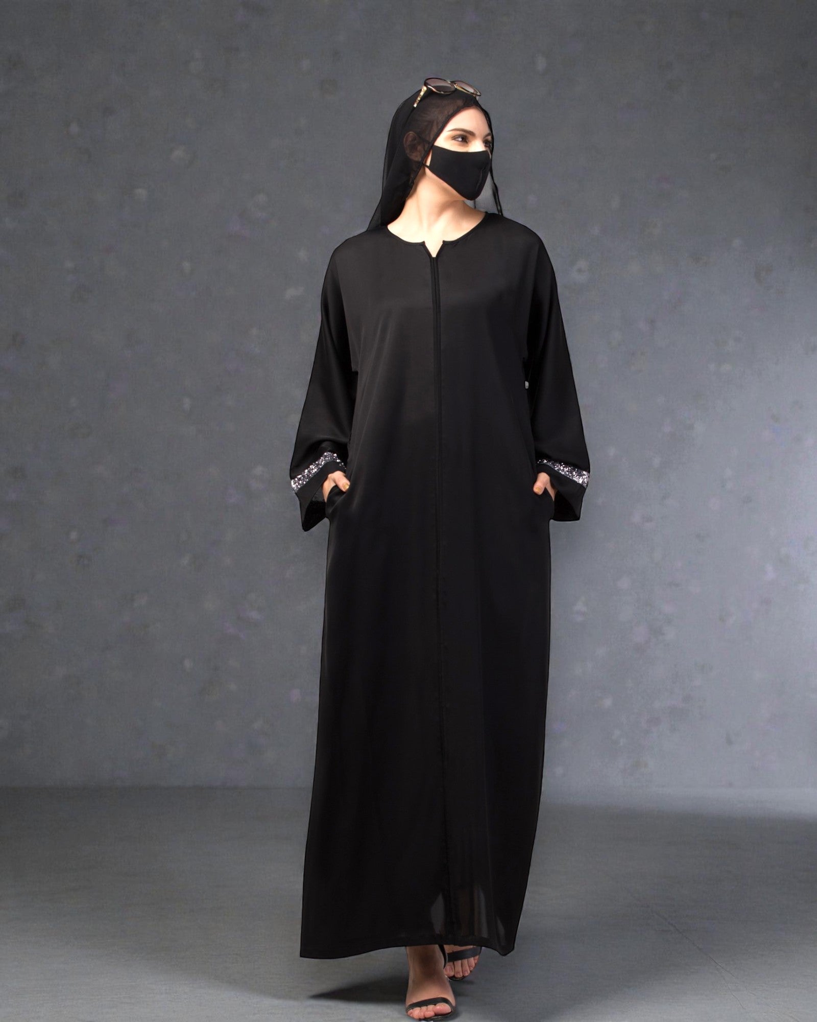 Closed Abaya made with luxurious Nida Satin Fabric.