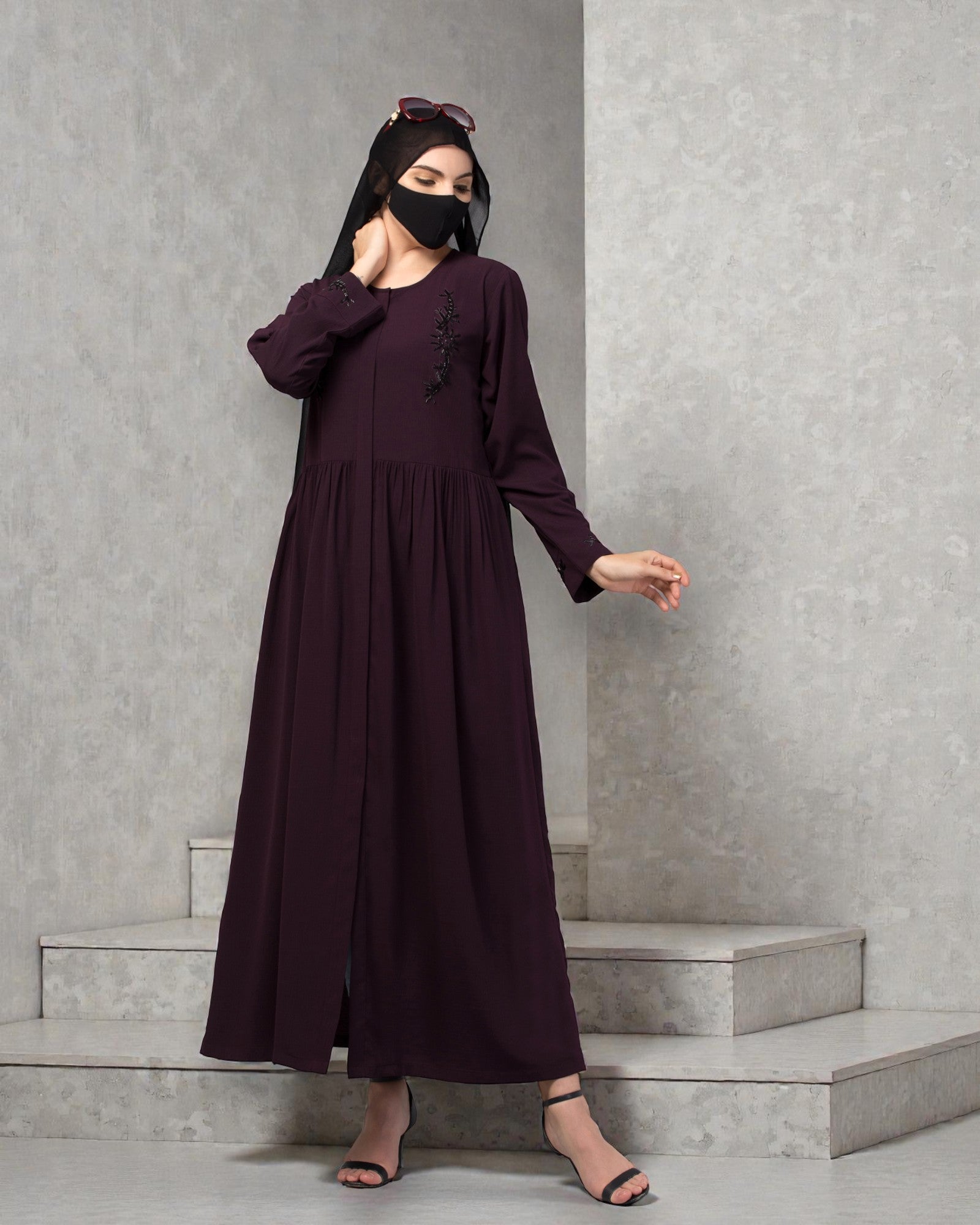 Front Open Abaya Dress made with premium CYE Crush fabric, known for its self-design.