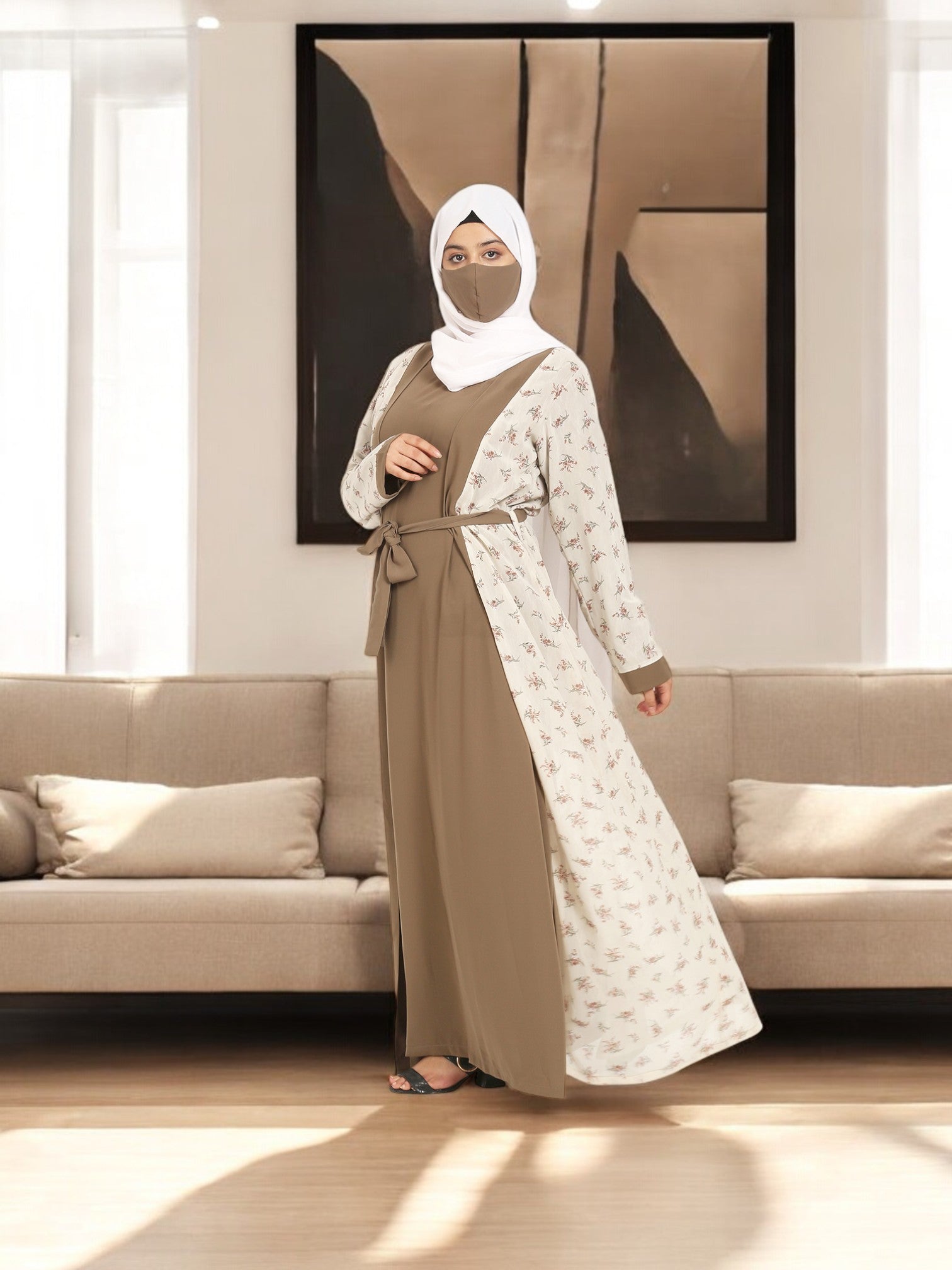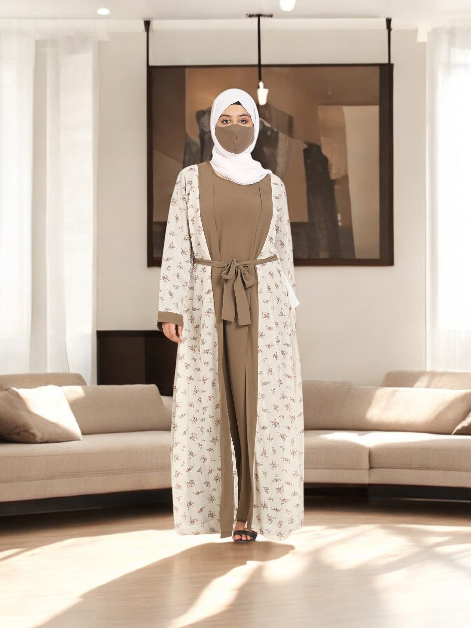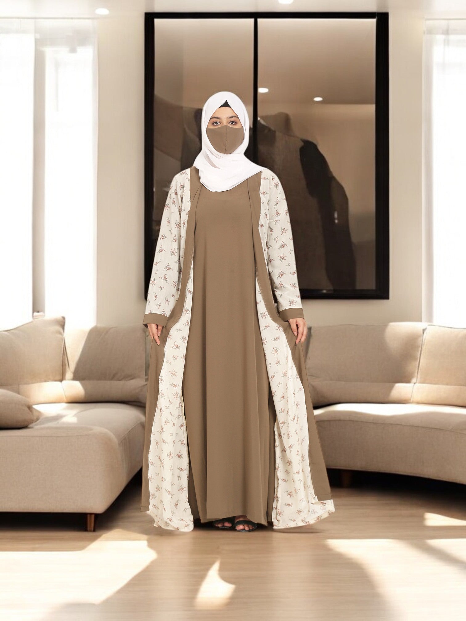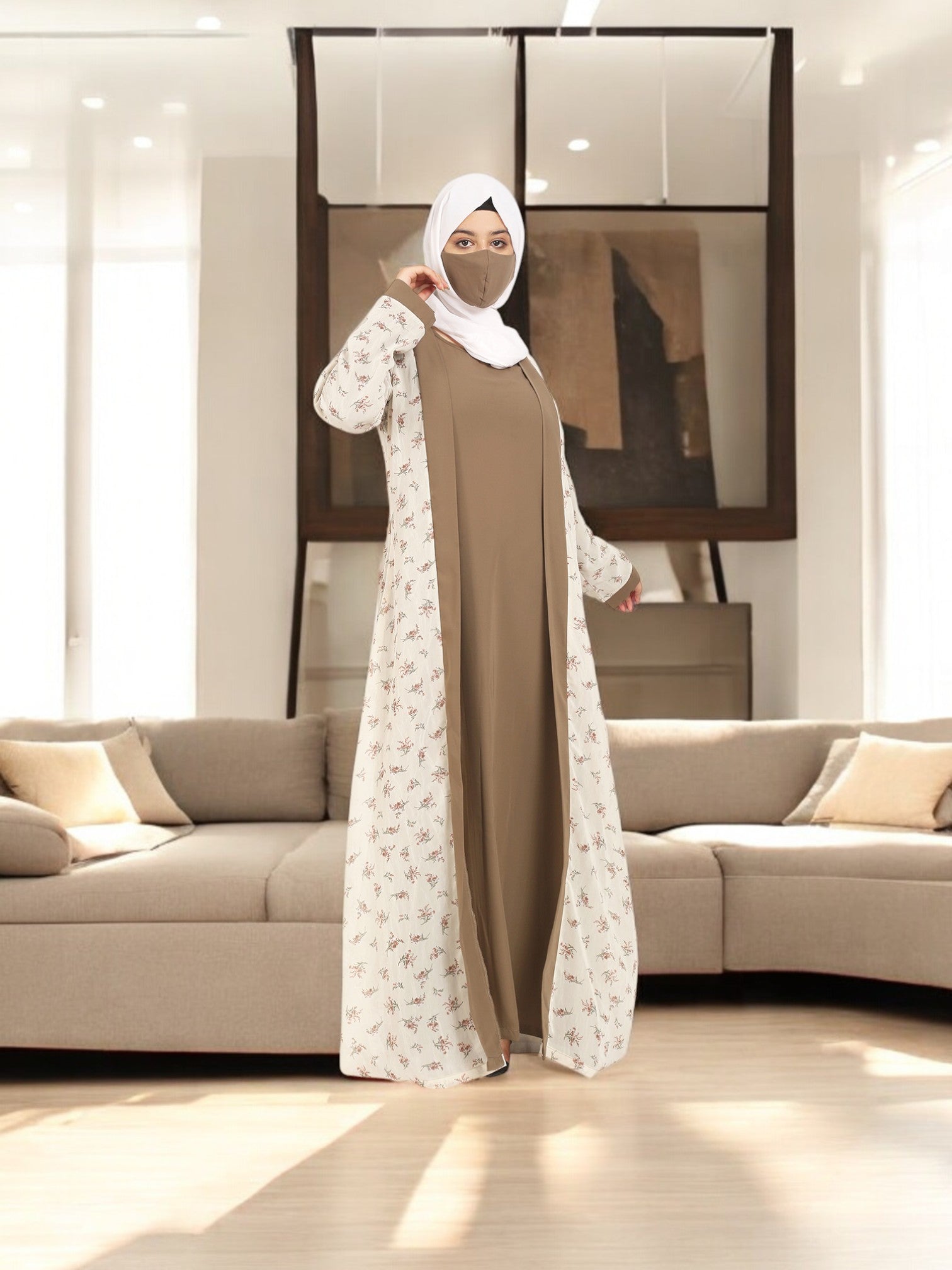 2 Pieces Set Of A Printed Shrug and An Inner Abaya.