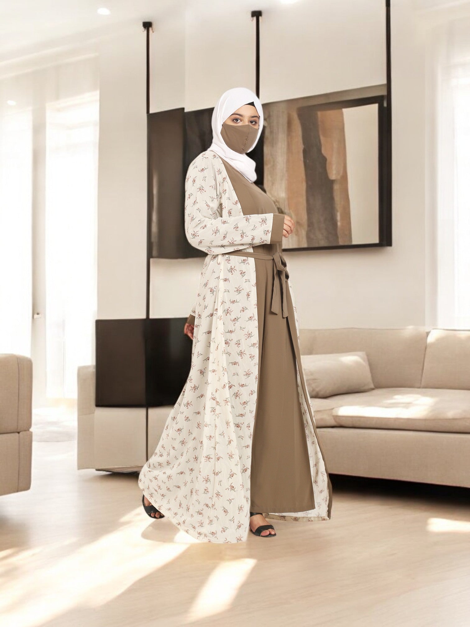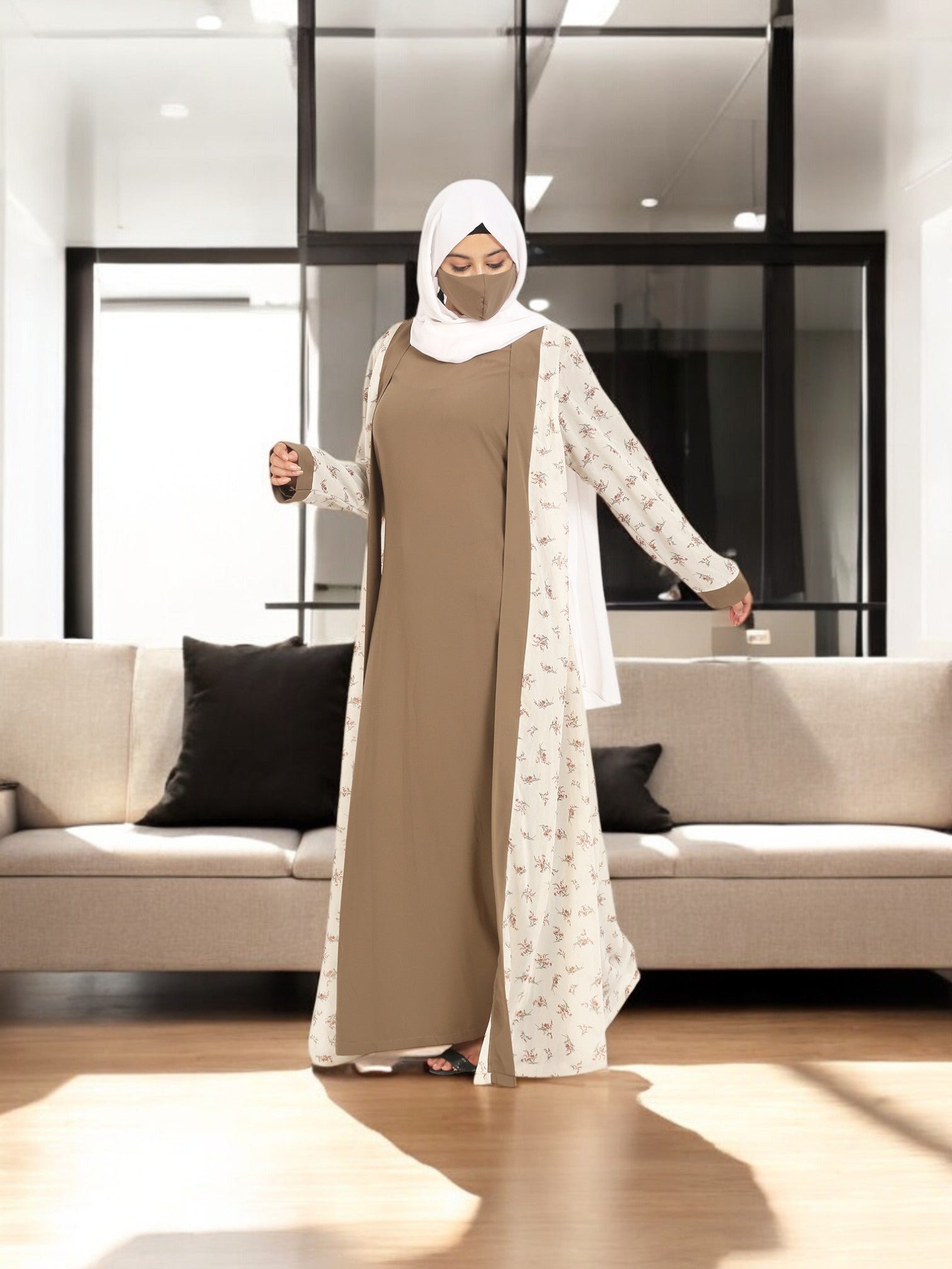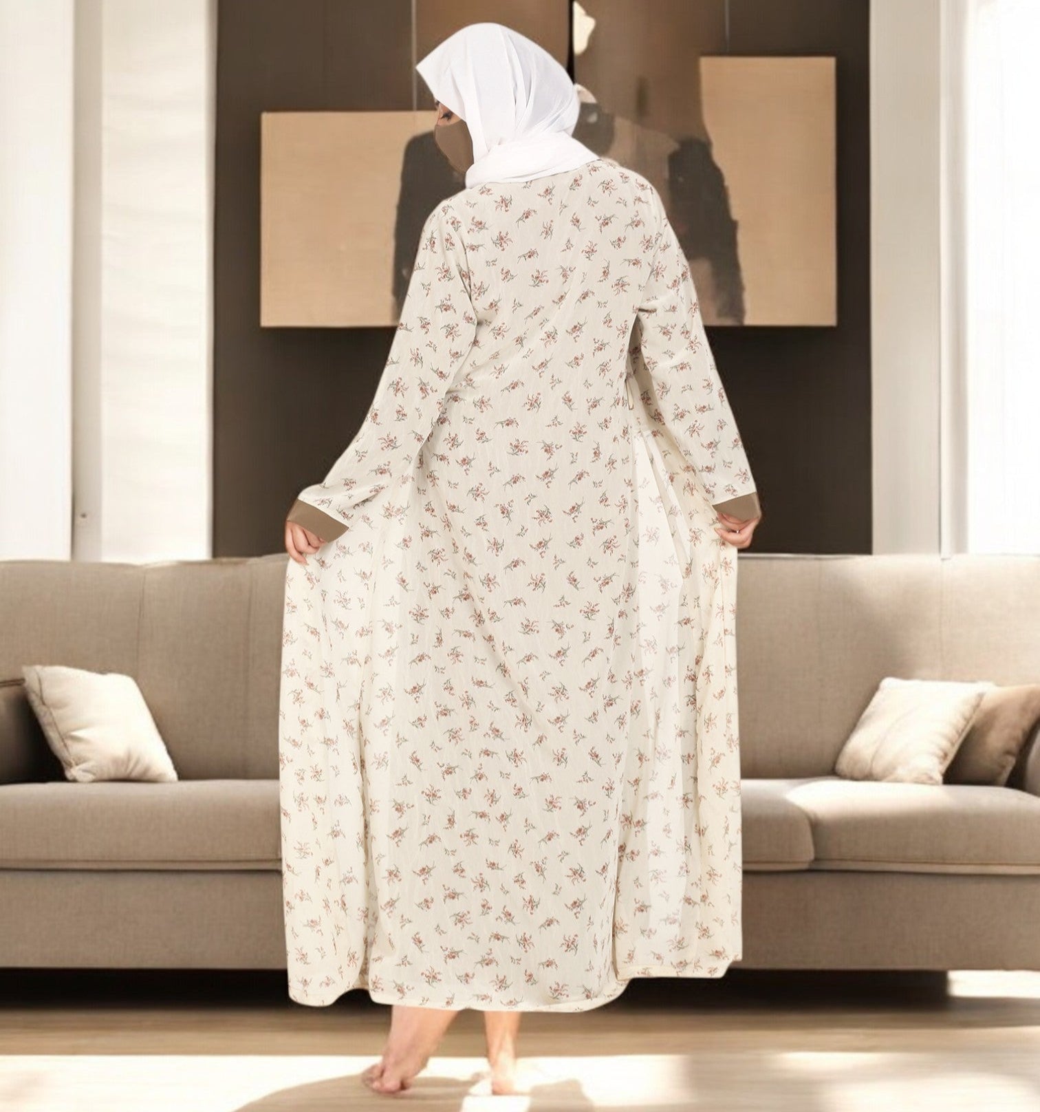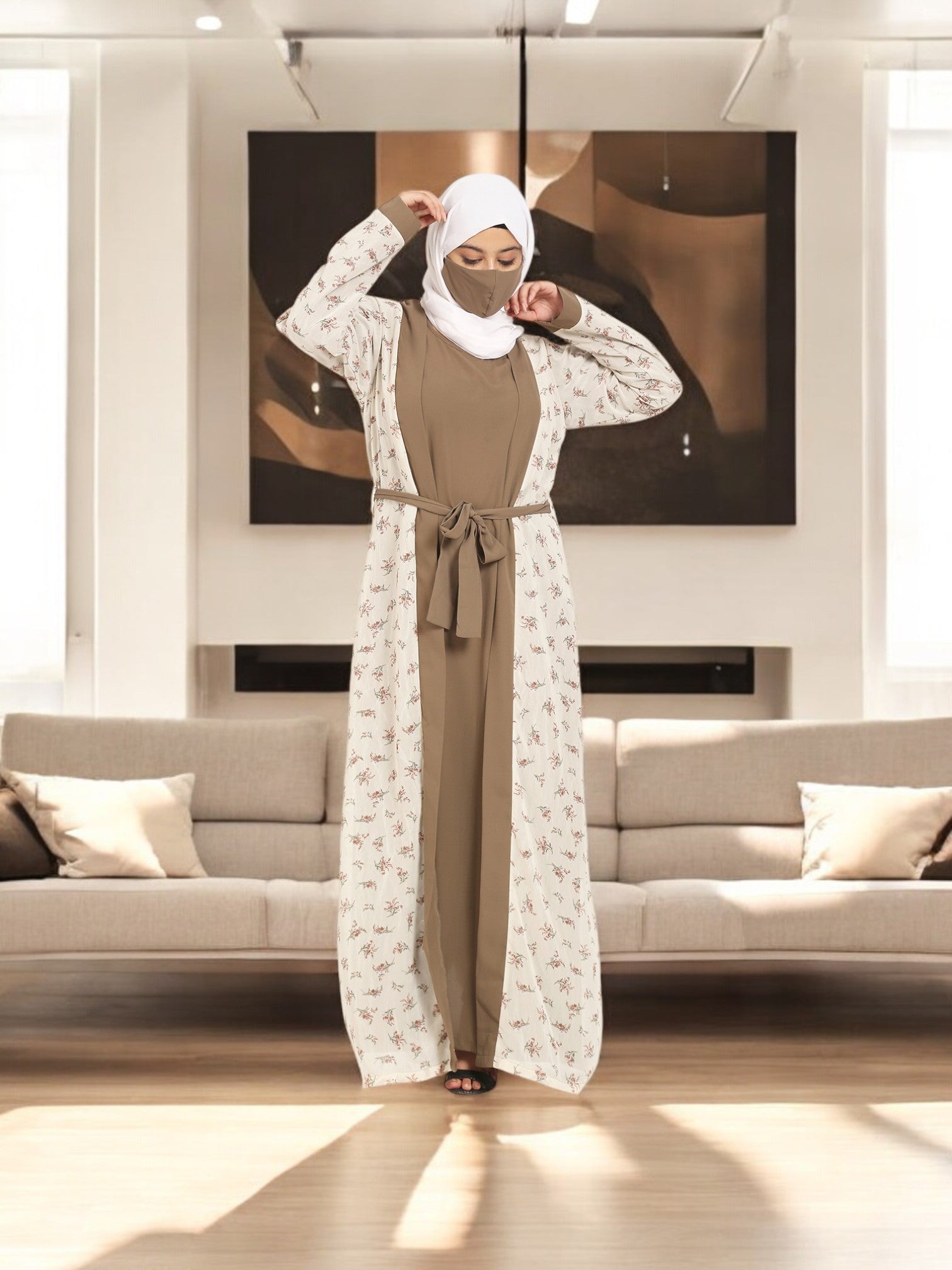 2 Pieces Set Of A Printed Shrug and An Inner Abaya.