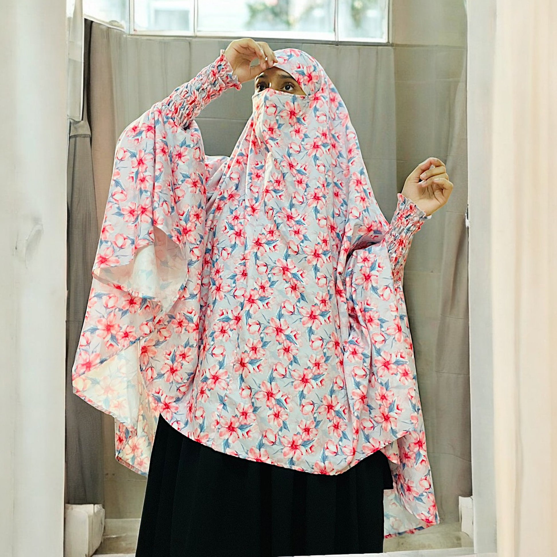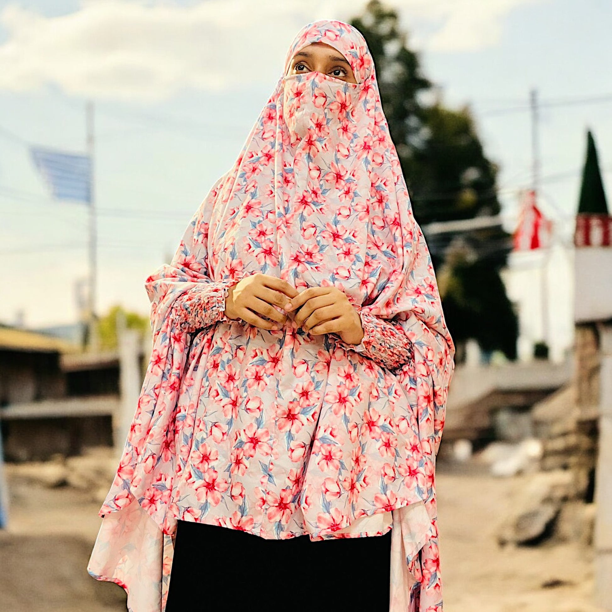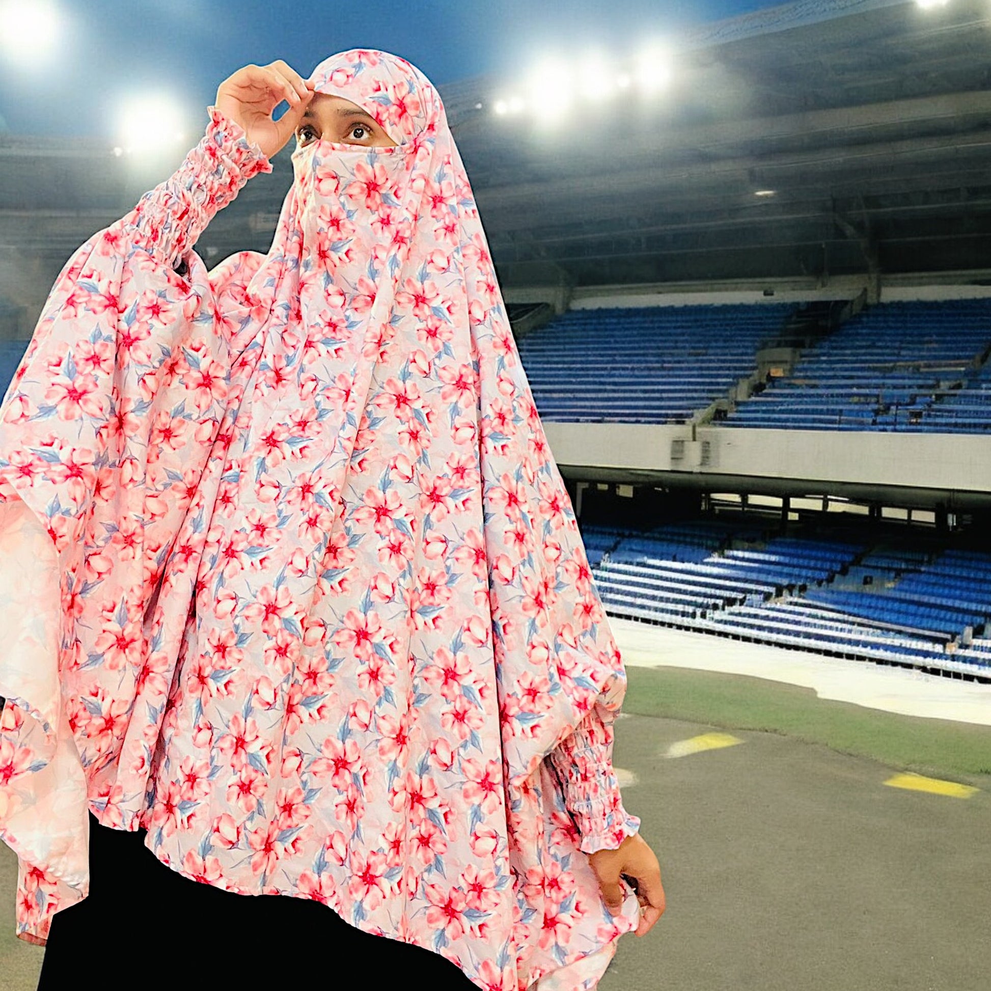 Printed Khimar-Long Prayer Hijab With Attached Mouth-Piece