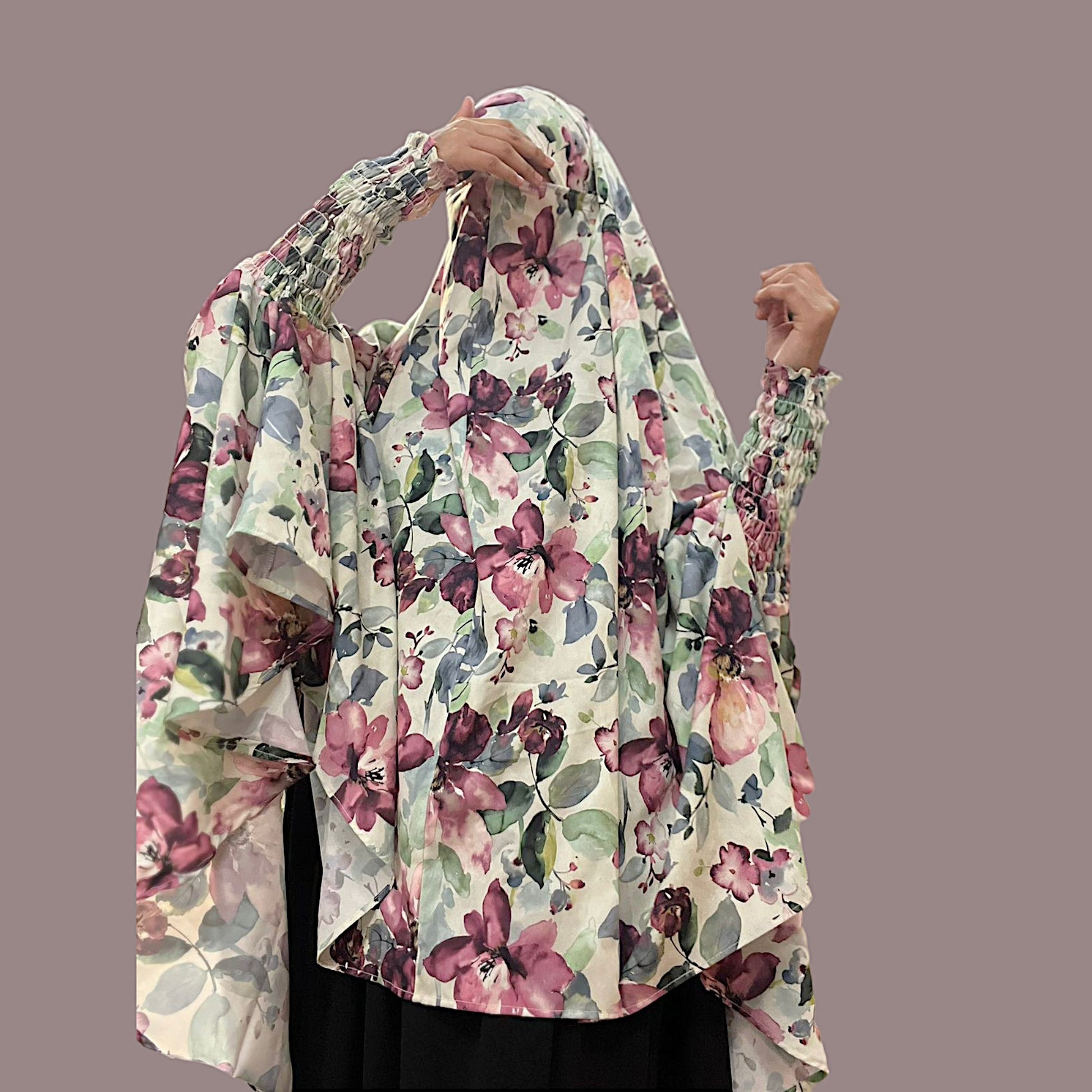 Printed Khimar-Long Prayer Hijab With Attached Mouth-Piece