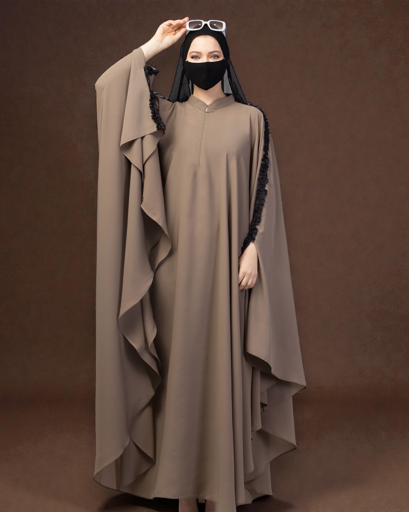 • Plain color Irani Kaftan with ruffles, throughout the sleeves.