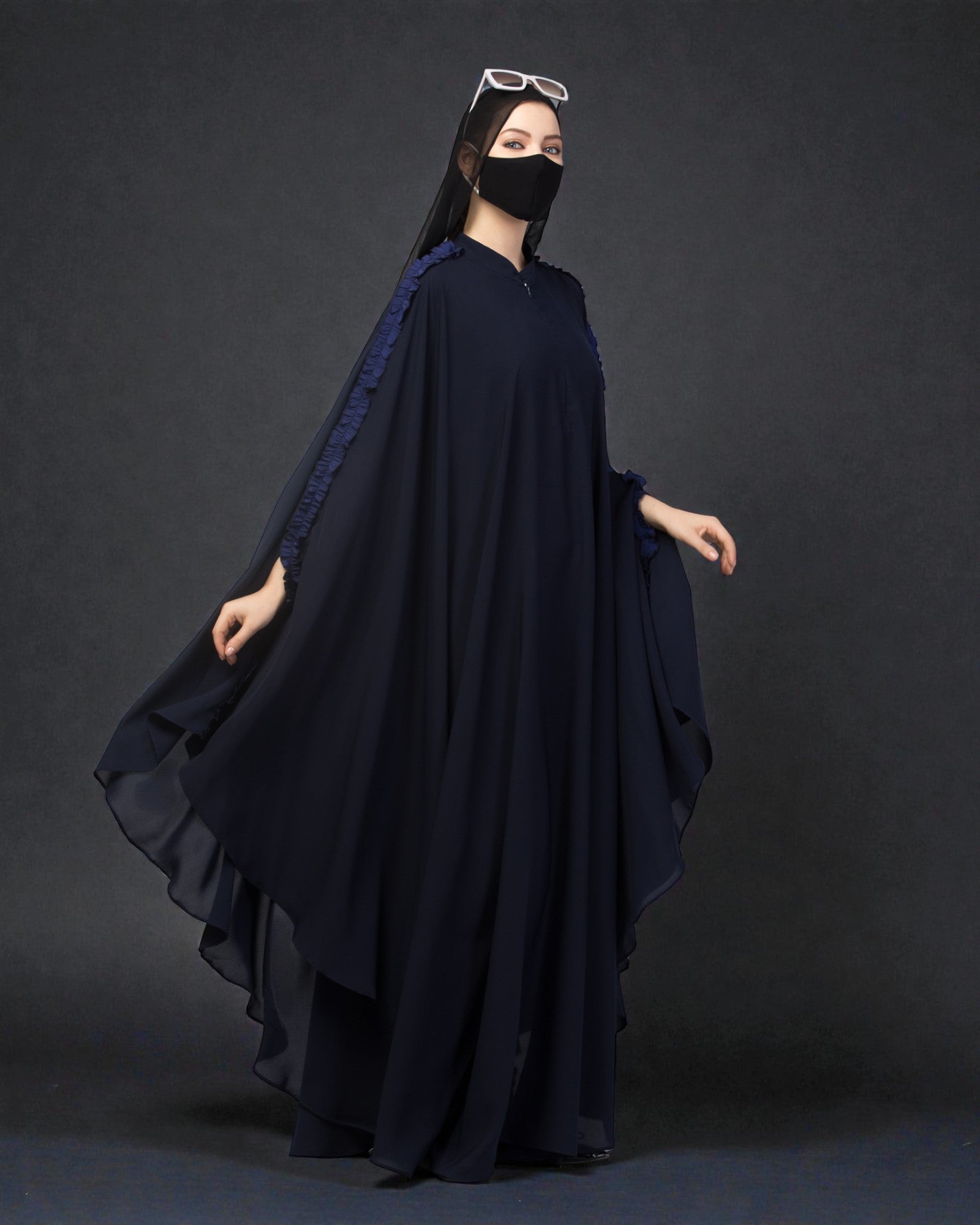 • Plain color Irani Kaftan with ruffles, throughout the sleeves.