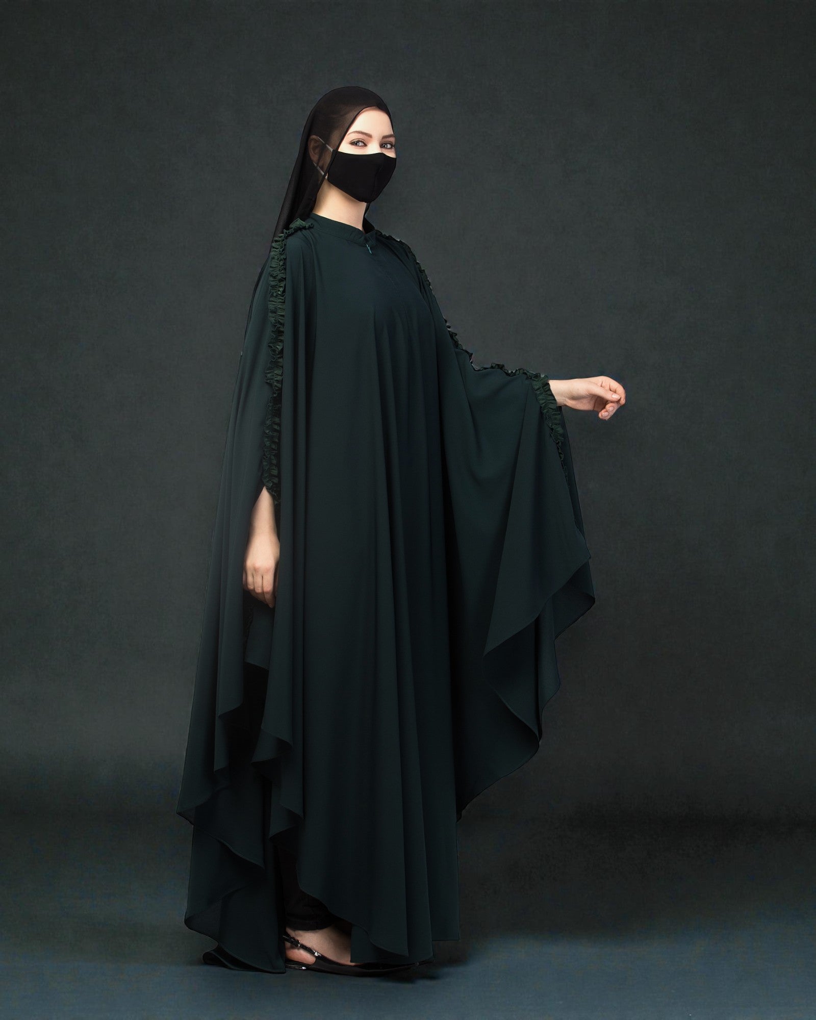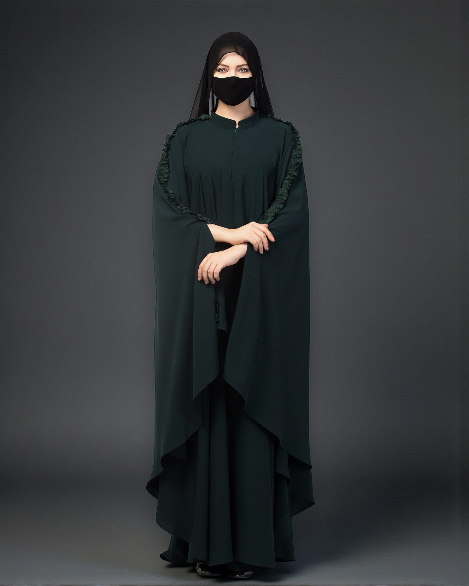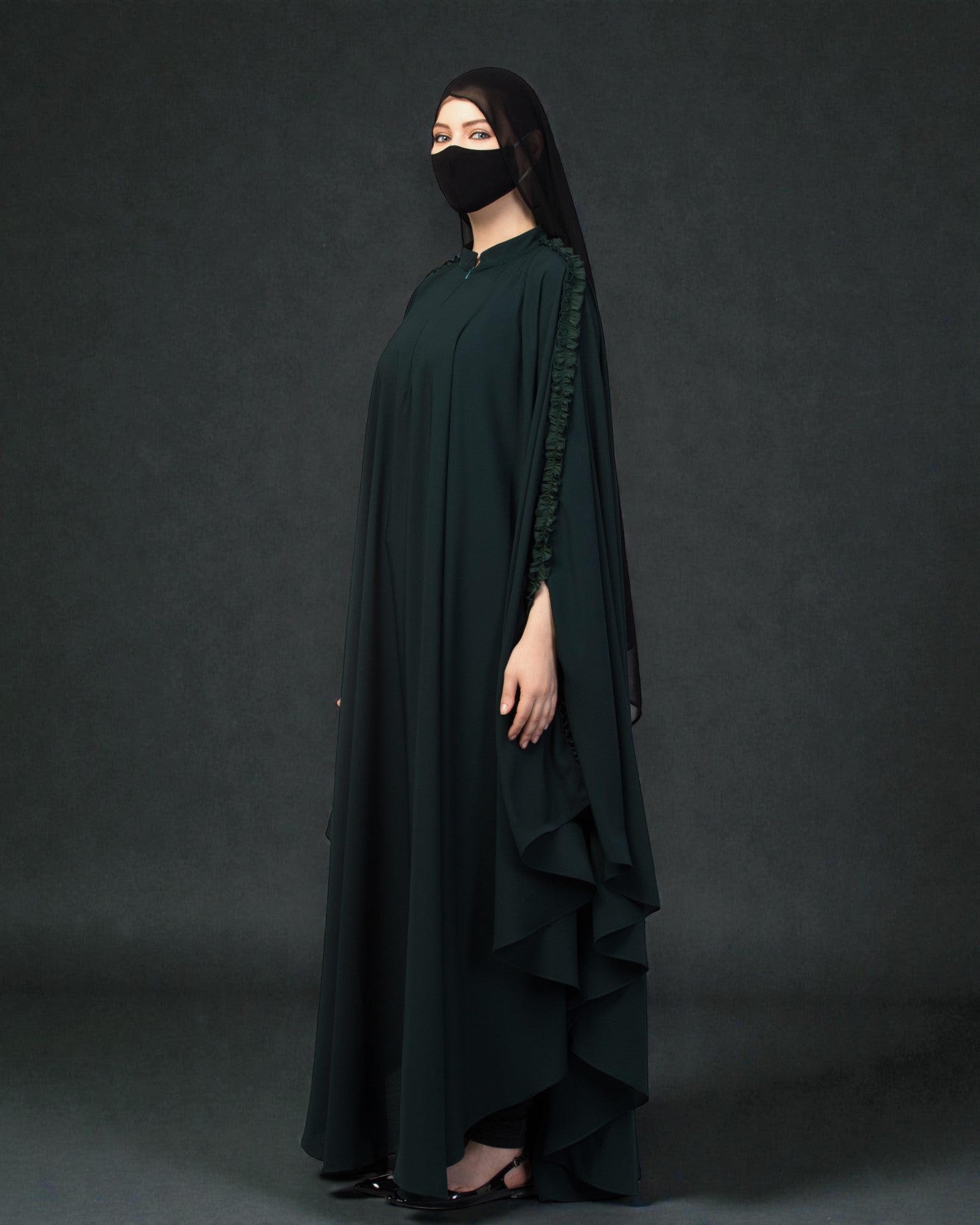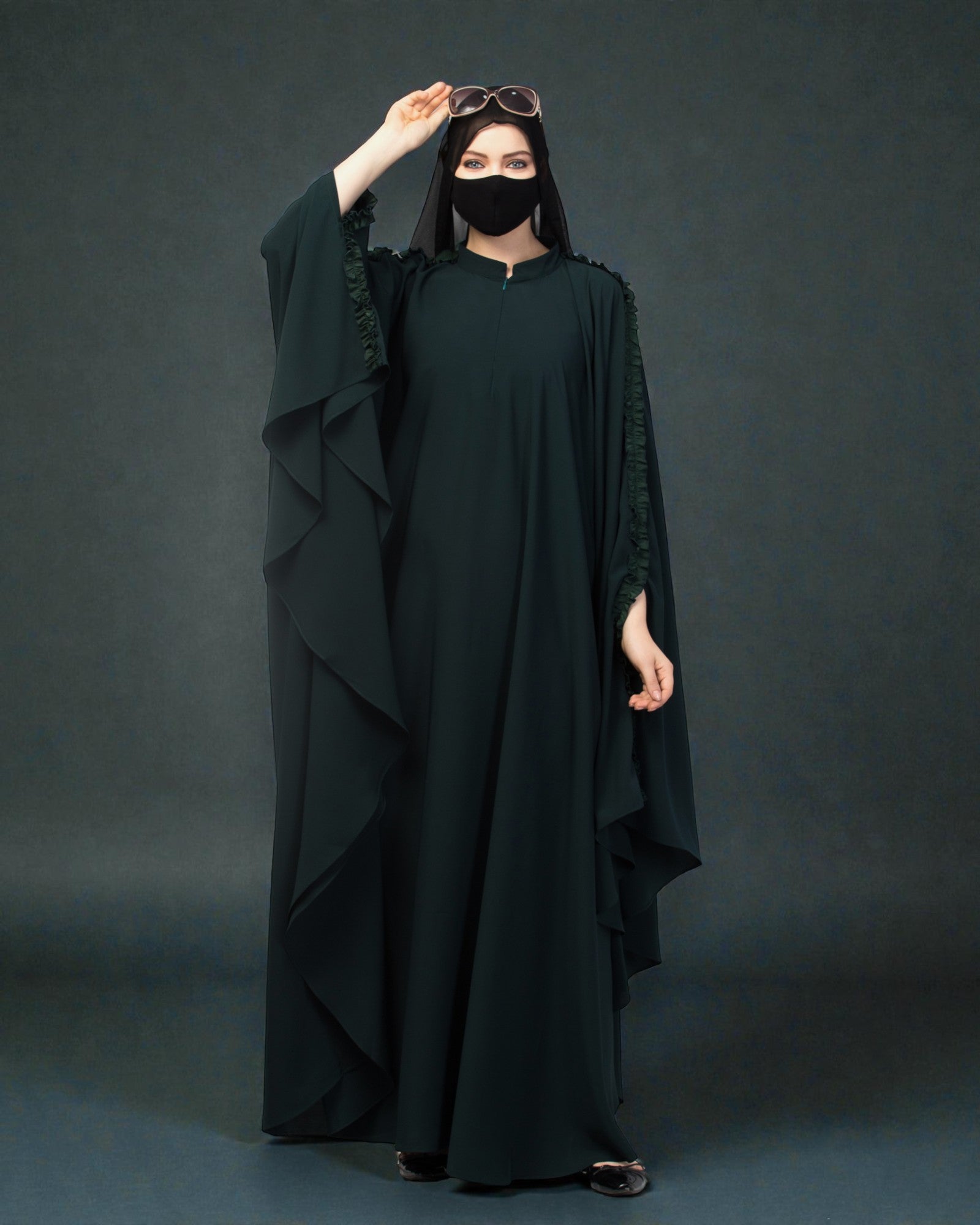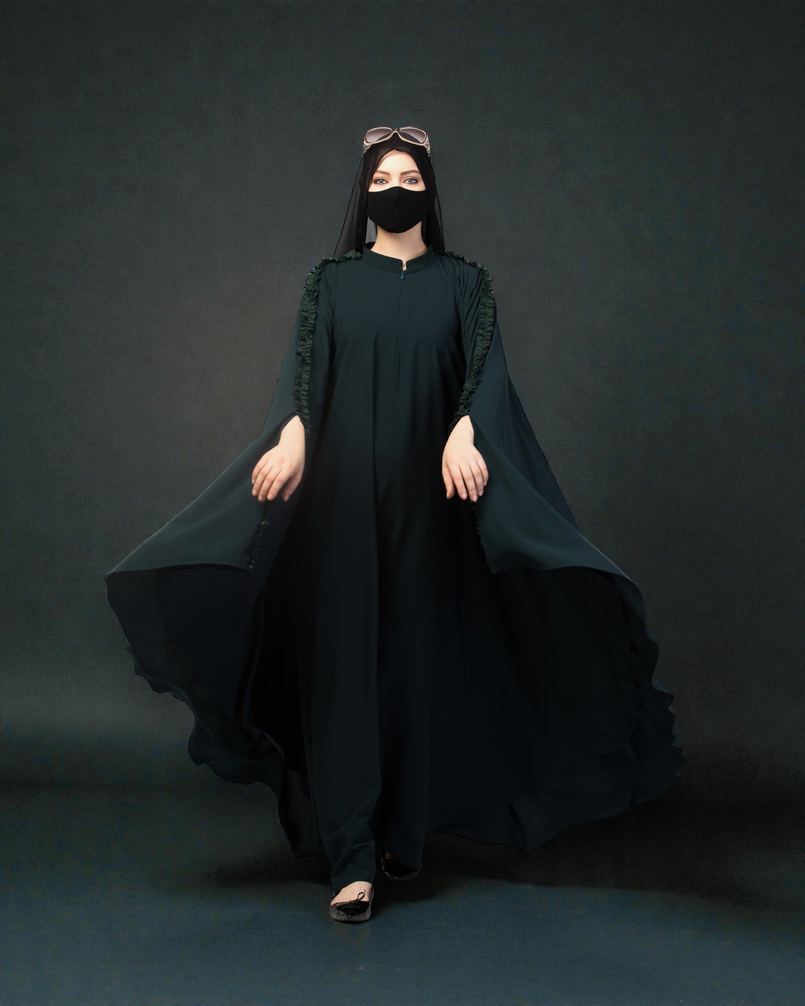 • Plain color Irani Kaftan with ruffles, throughout the sleeves.