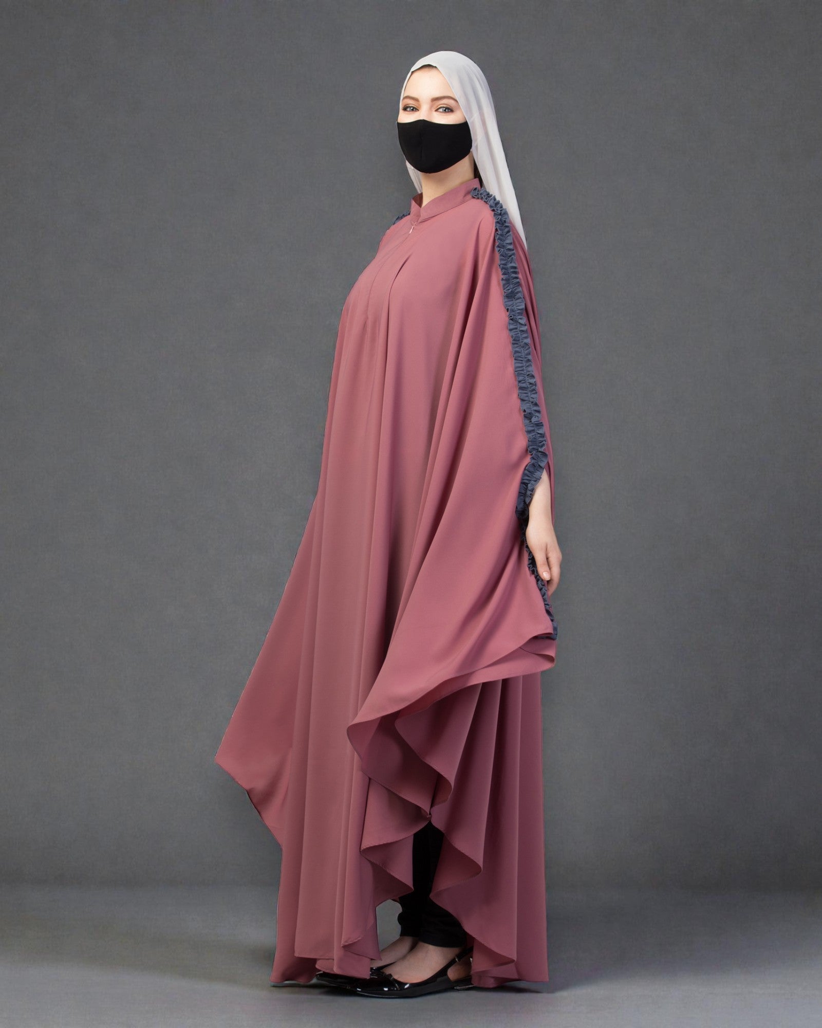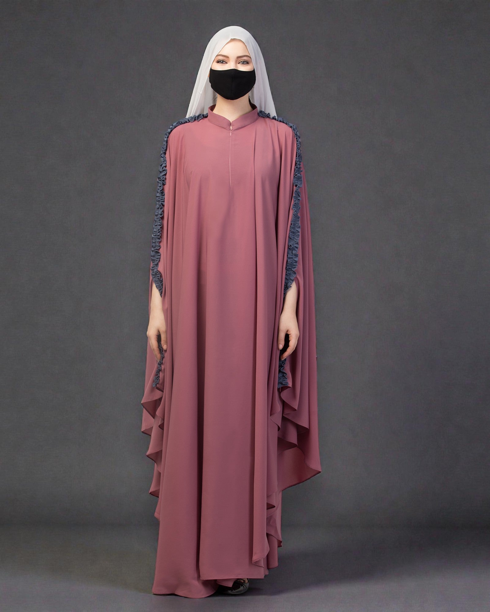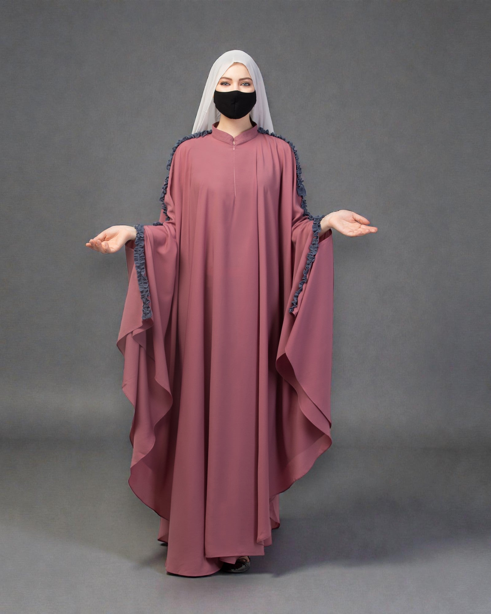 • Plain color Irani Kaftan with ruffles, throughout the sleeves.