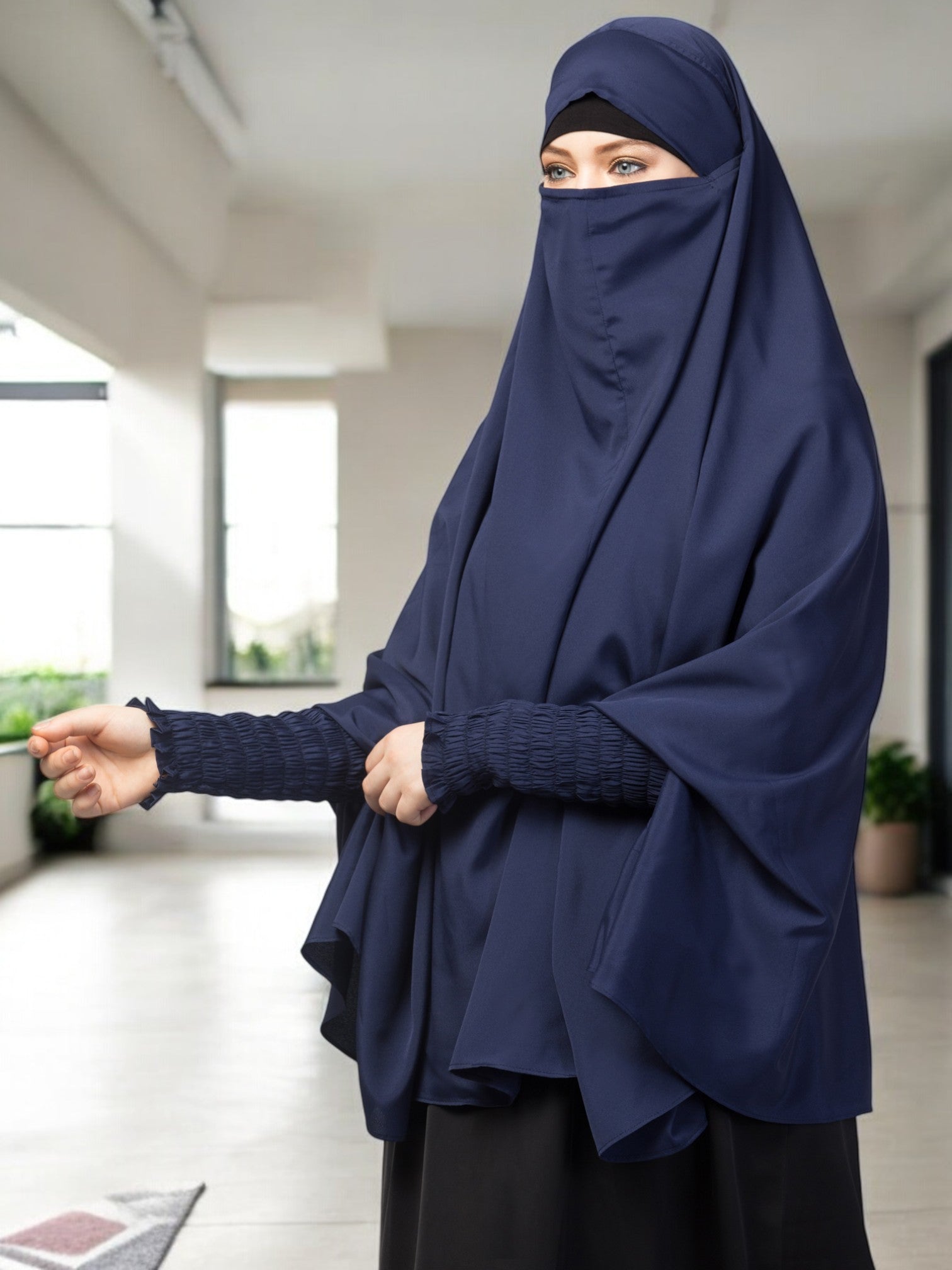 β’ This fuss-free hijab comes with beautiful smoking wrists and an attached mouthpiece.