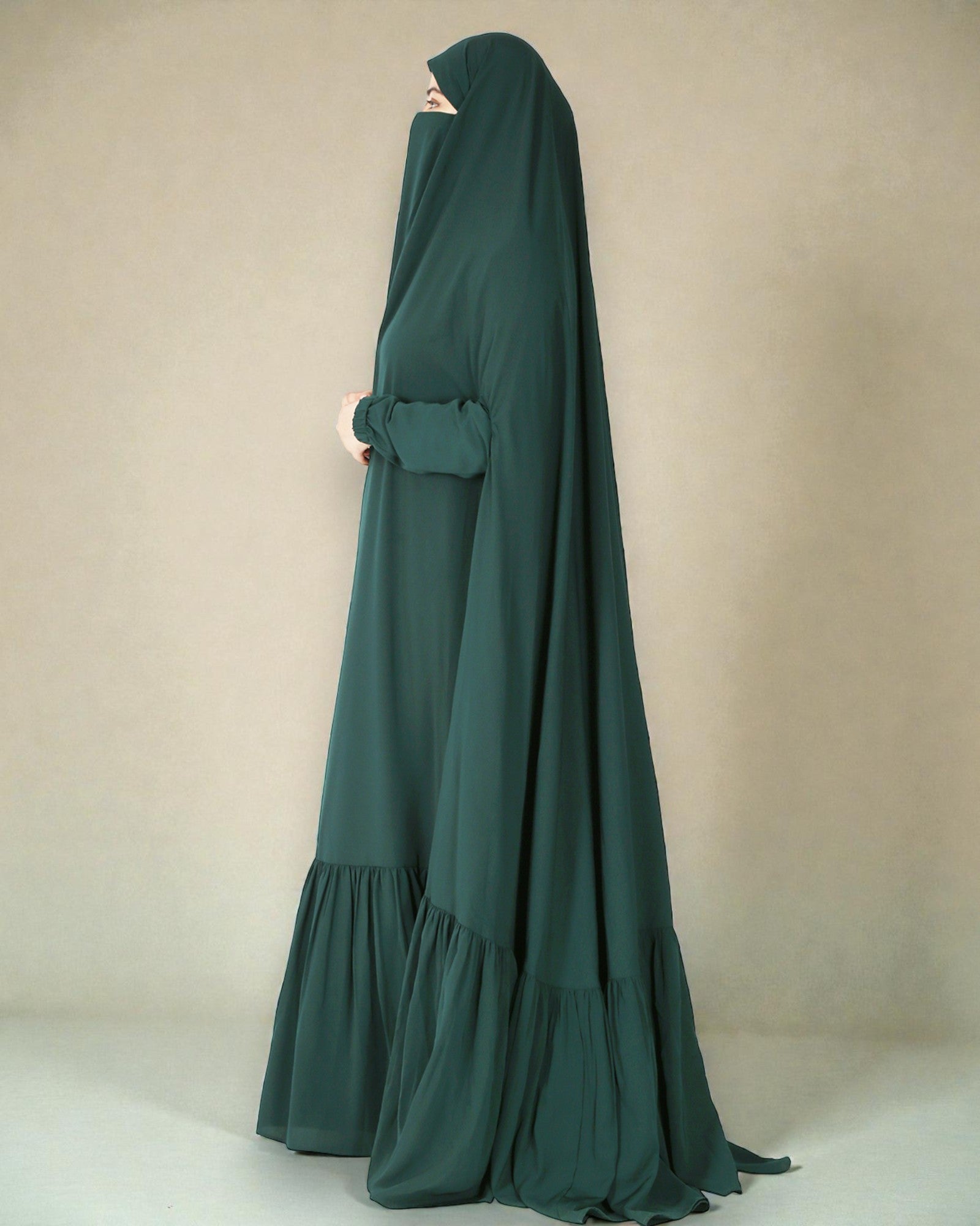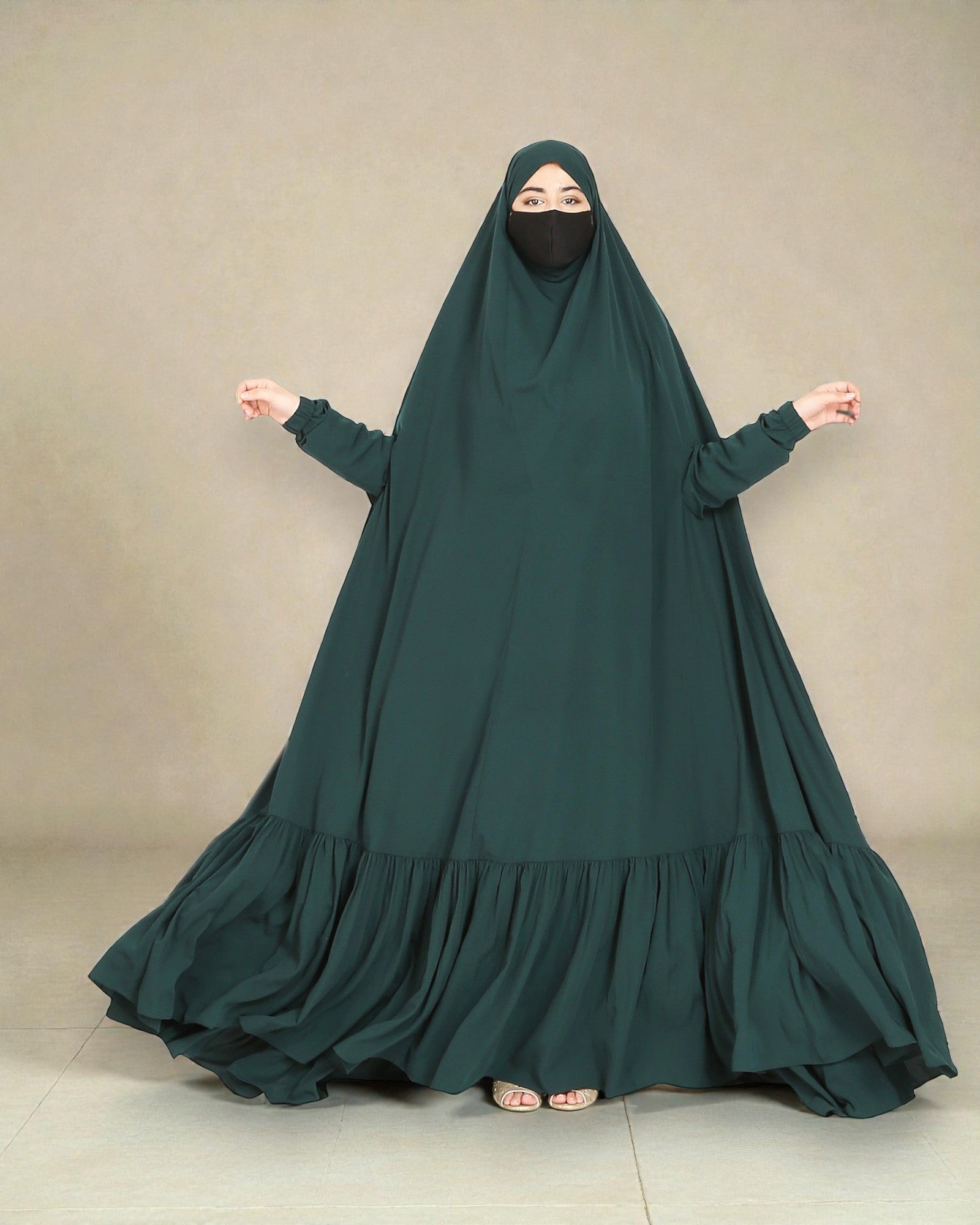 One Piece Jilbab With Adjustable Nose Piece and Frilly Bottom-Very Loose Fit