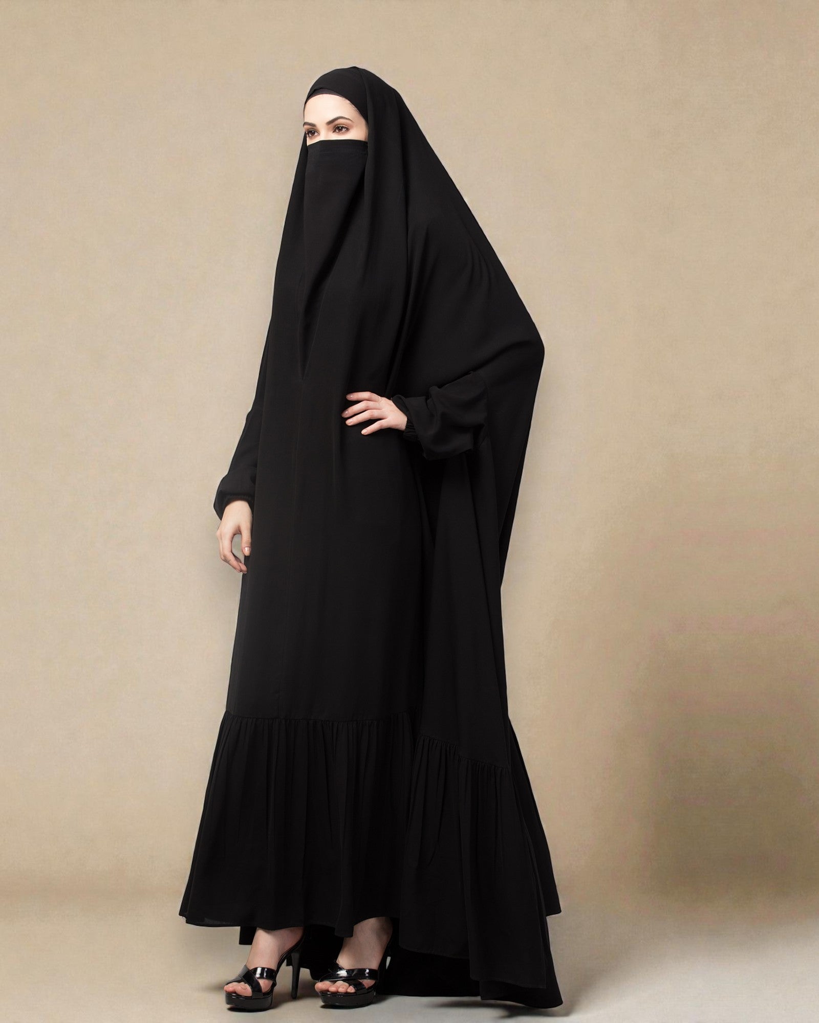 One Piece Jilbab With Adjustable Nose Piece and Frilly Bottom-Very Loose Fit