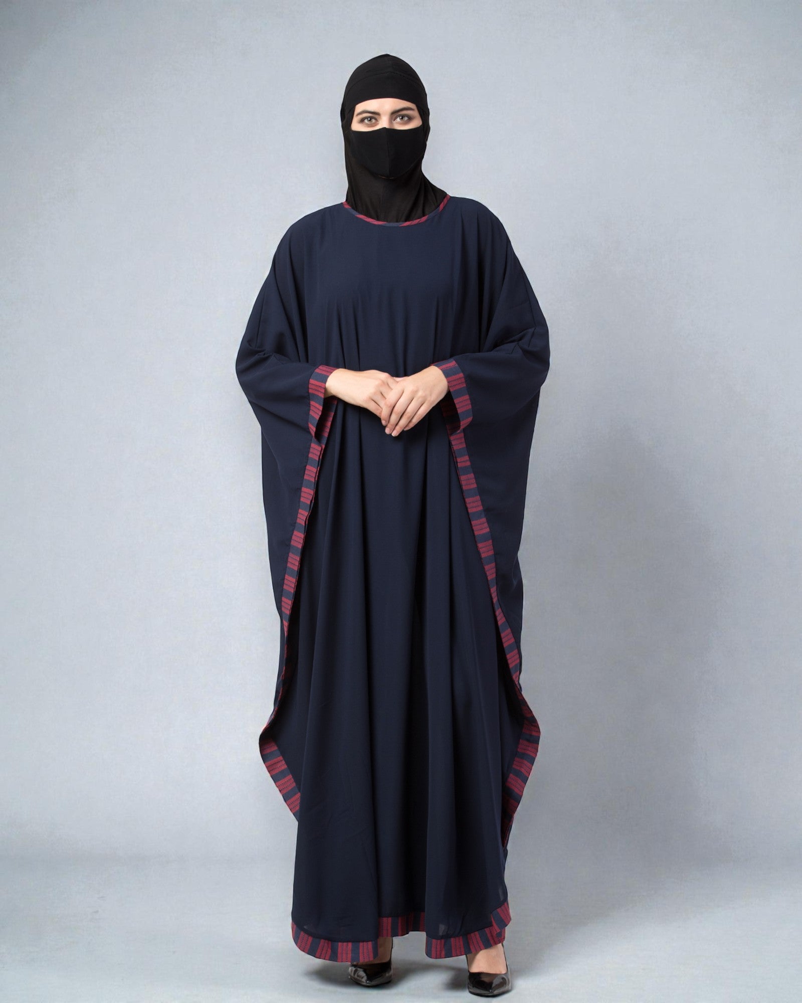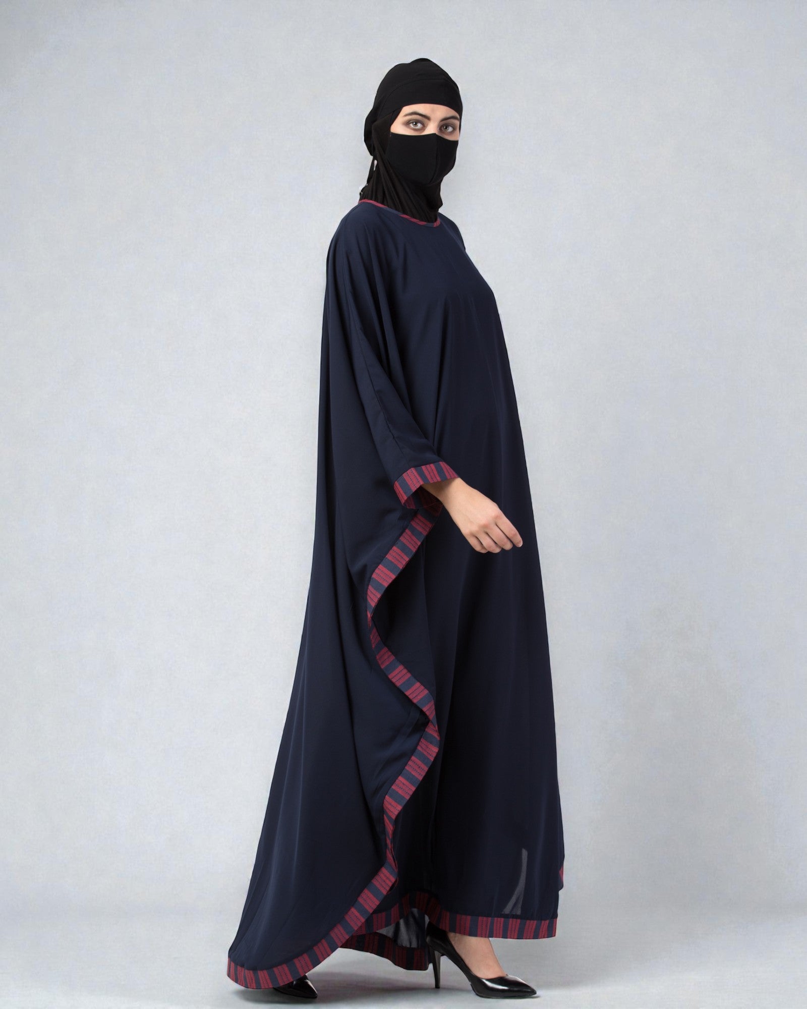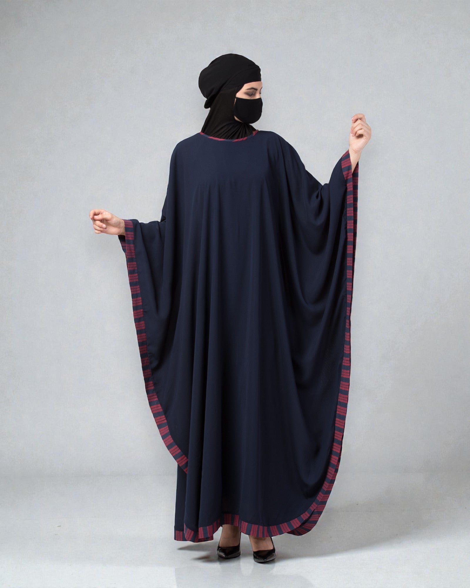 Musheco-Free Size Kaftan Abaya With Striped Border