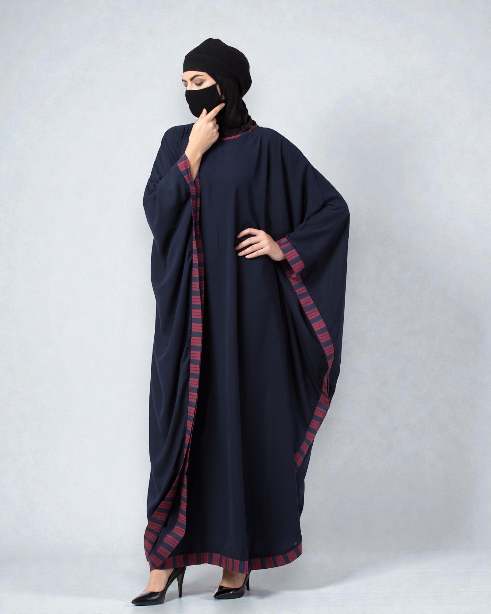 - For all abayas: Machine wash on a gentle cycle or hand wash with mild detergent in cold water.