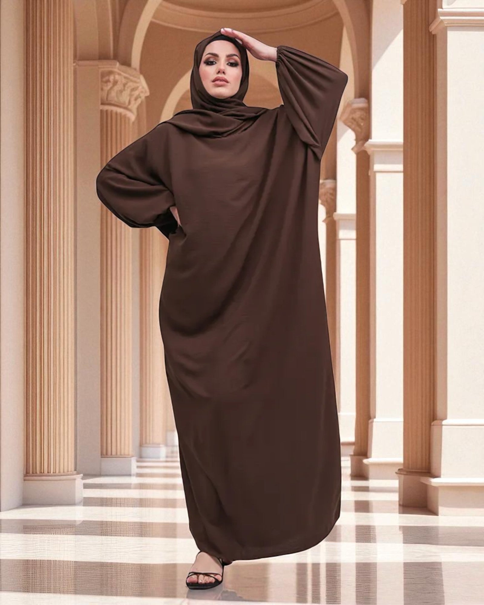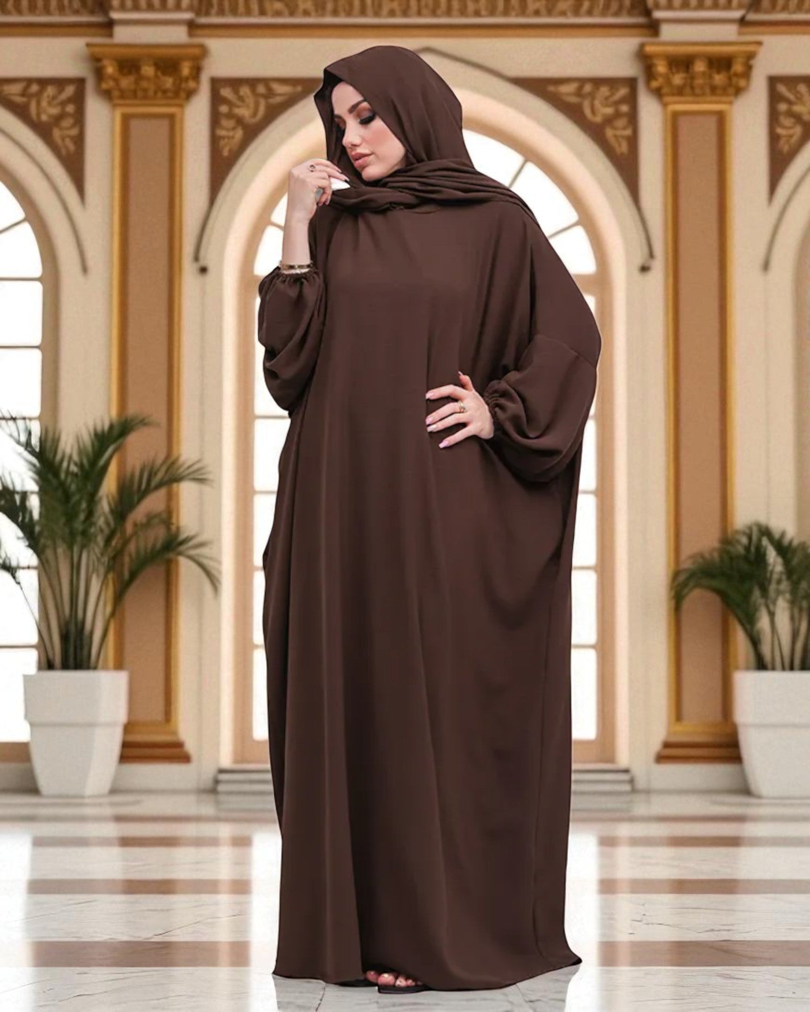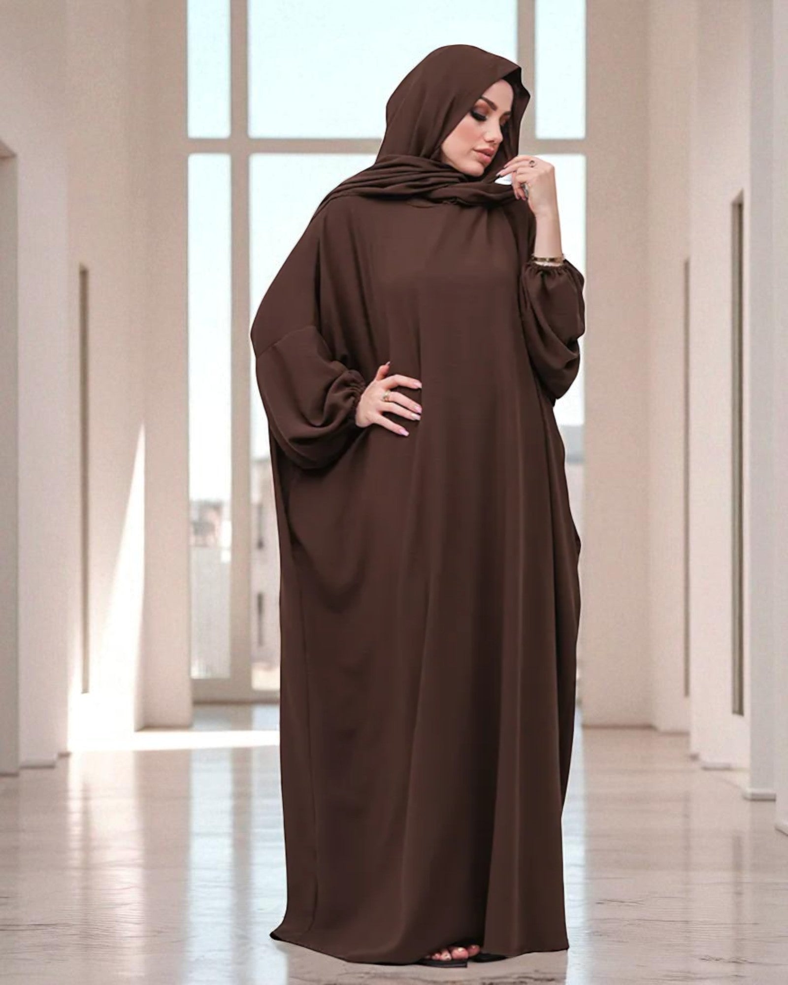 Free Size Kaftan Abaya - CYE Crush Fabric - Elasticated Sleeves - Matching Hijab