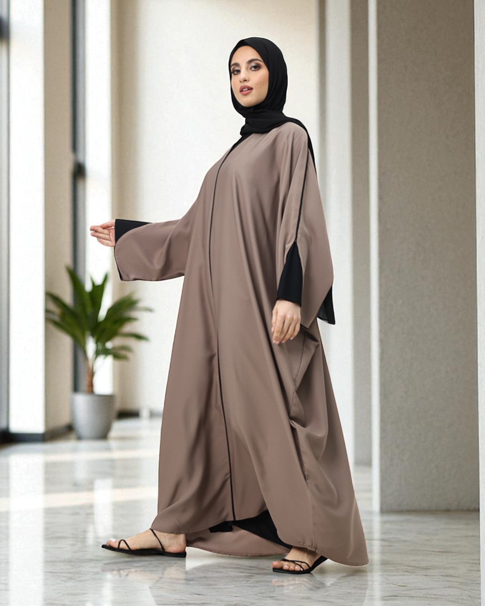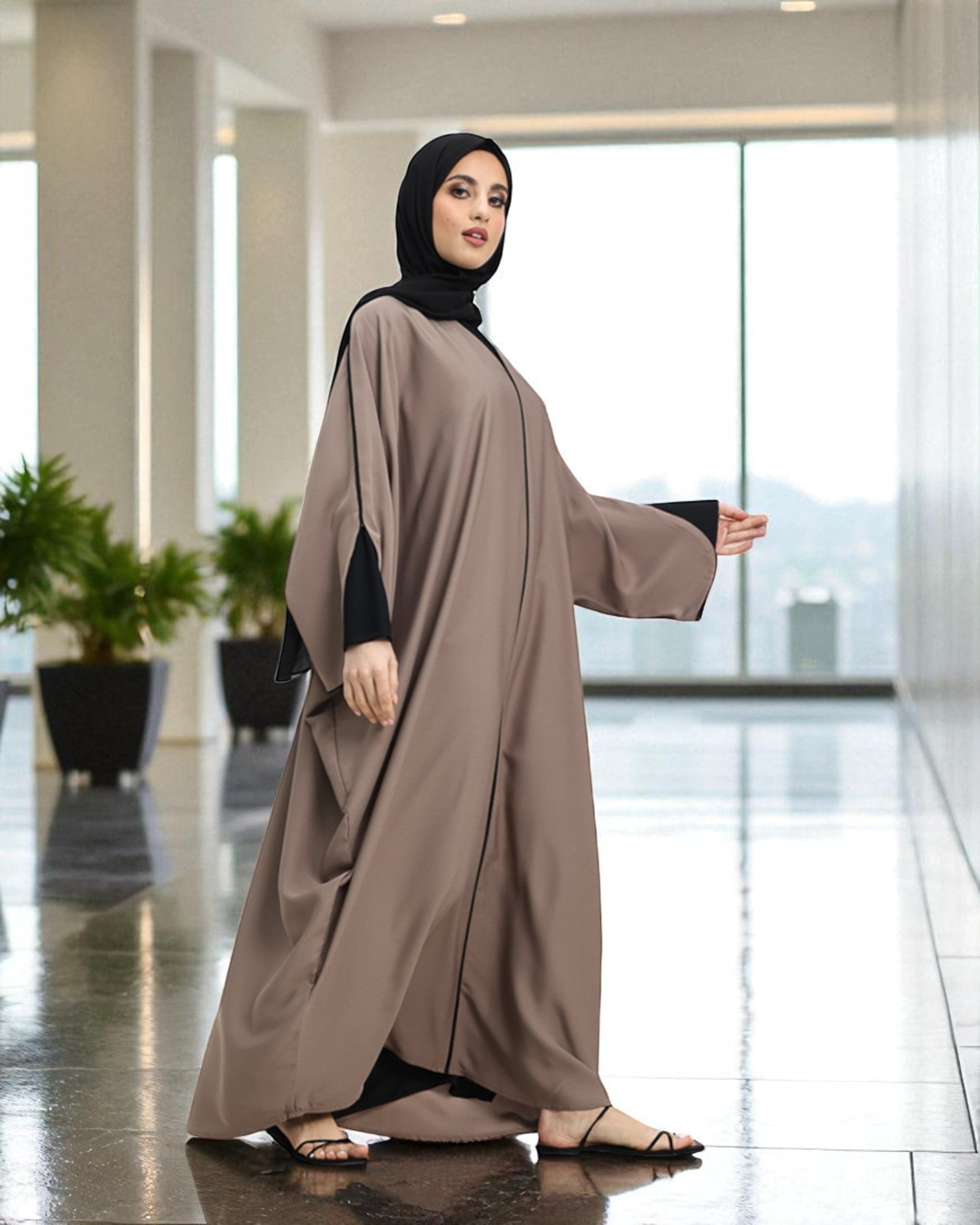 Free Size Kaftan Abaya in Premium Tiktok Fabric - Closed Abaya - Piping Design - Contrast Piping - Designer Sleeves - Complementary Hijab