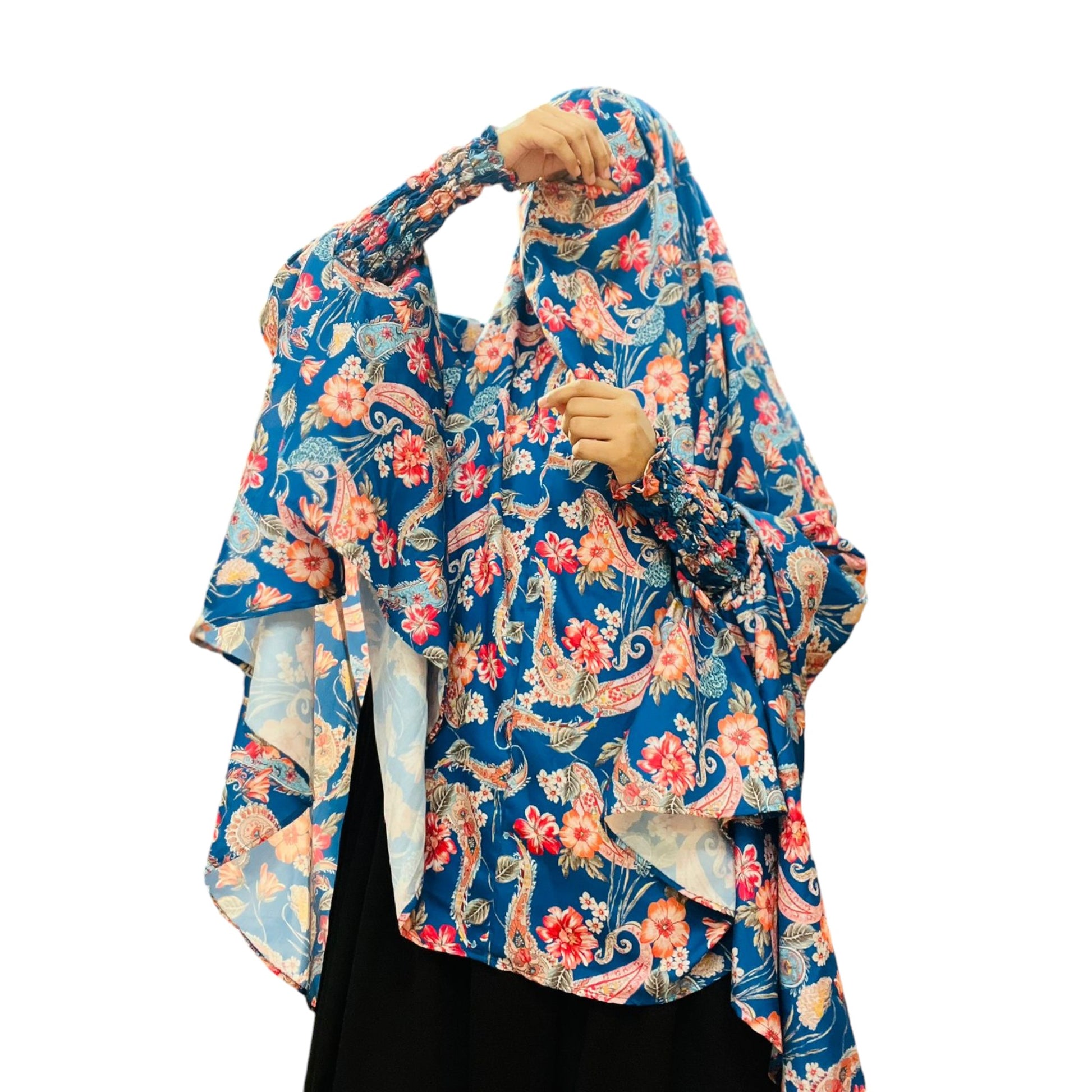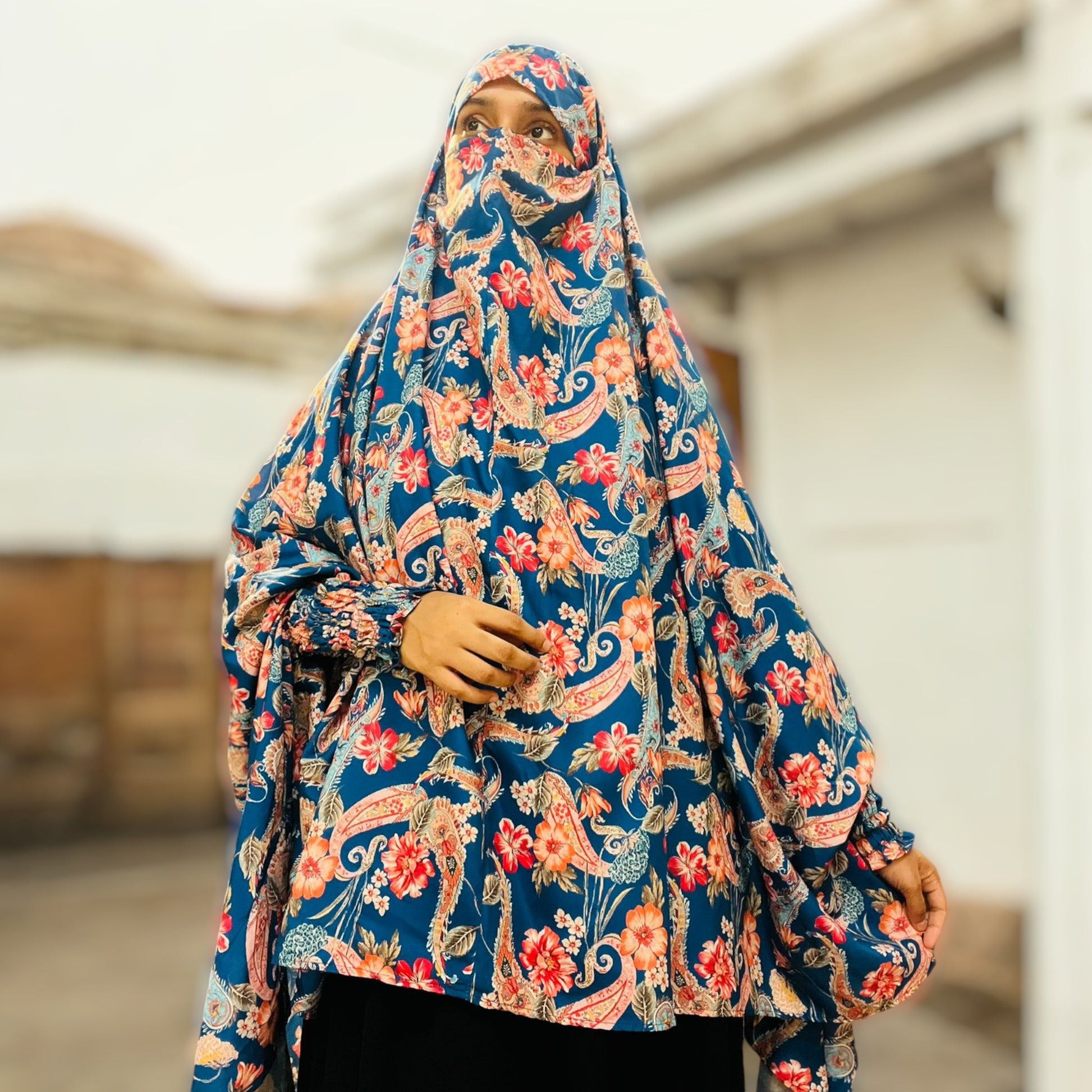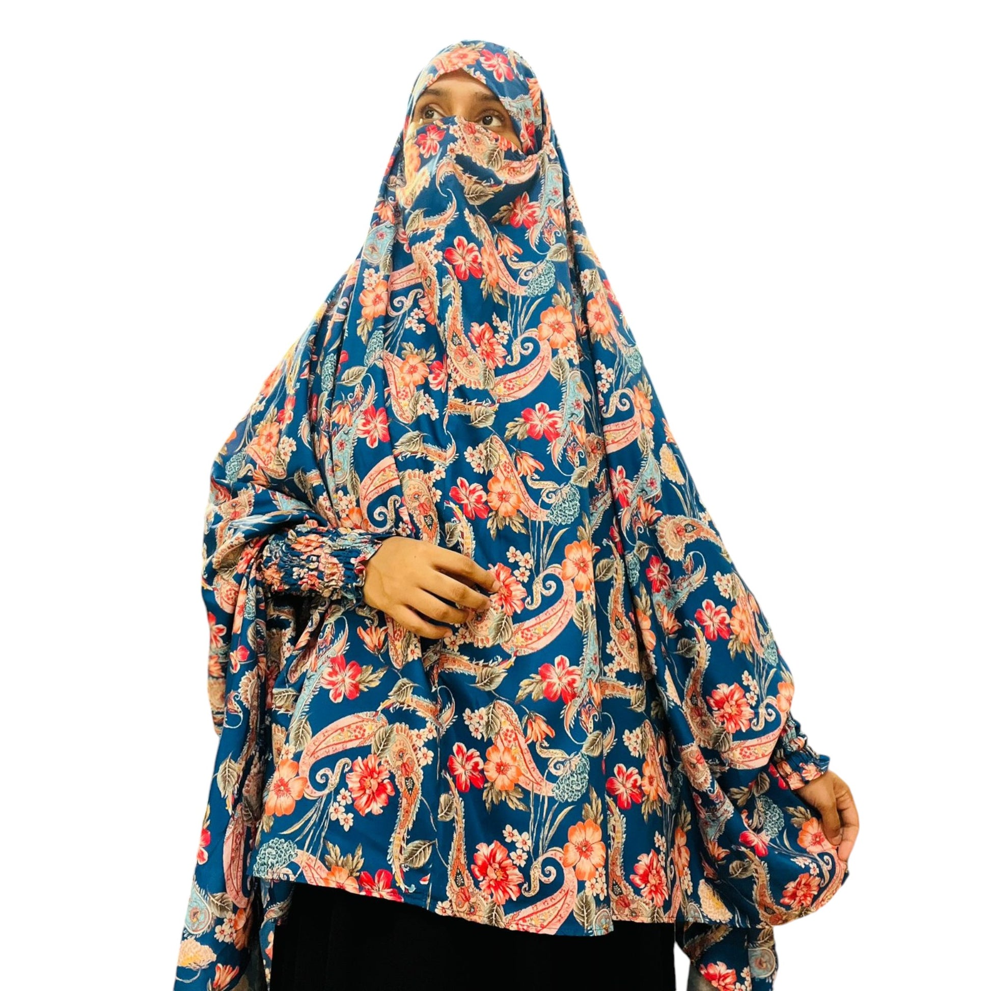 Printed Khimar-Long Prayer Hijab With Attached Mouth-Piece