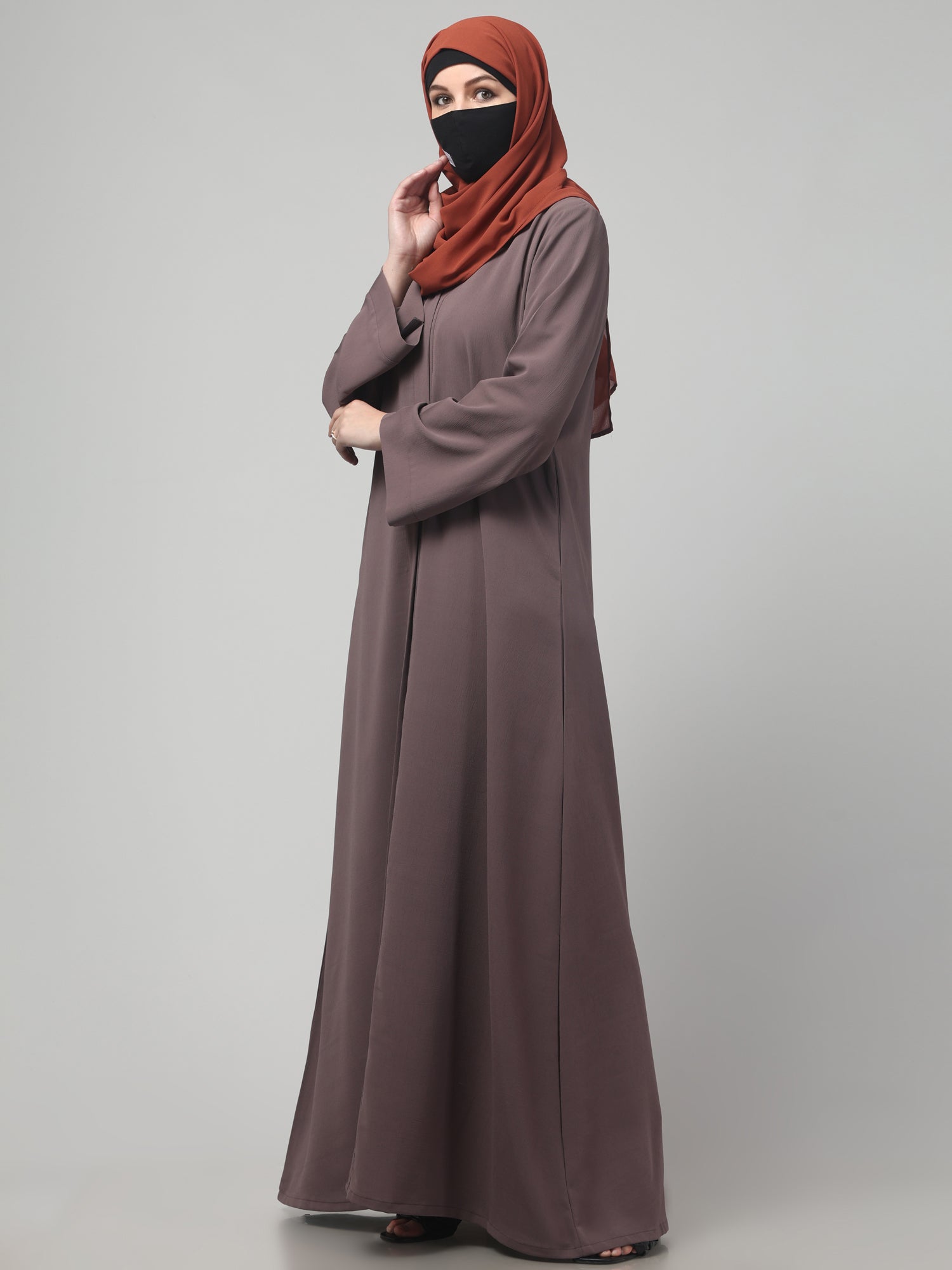 Crafted from CYE Crush Polyester, this Front Open Abaya offers both texture and sophistication, thanks to its minute crush effect, adding understated elegance. Designed for effortless style and versatility, it features: