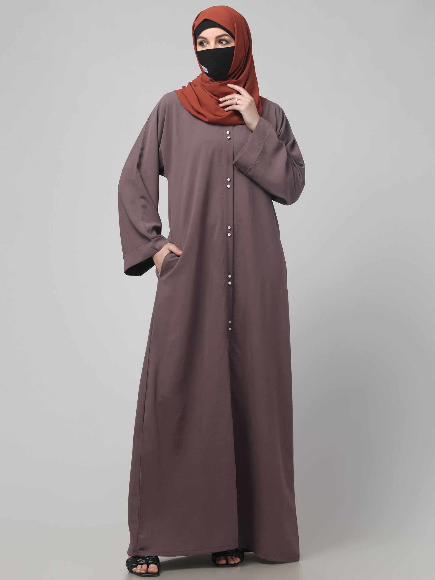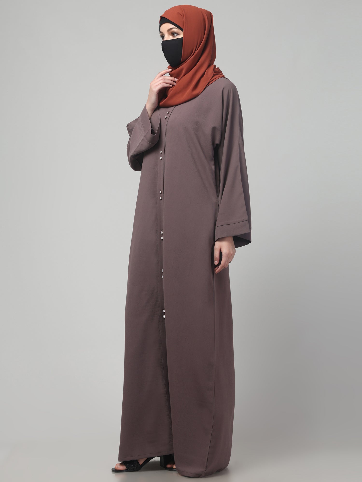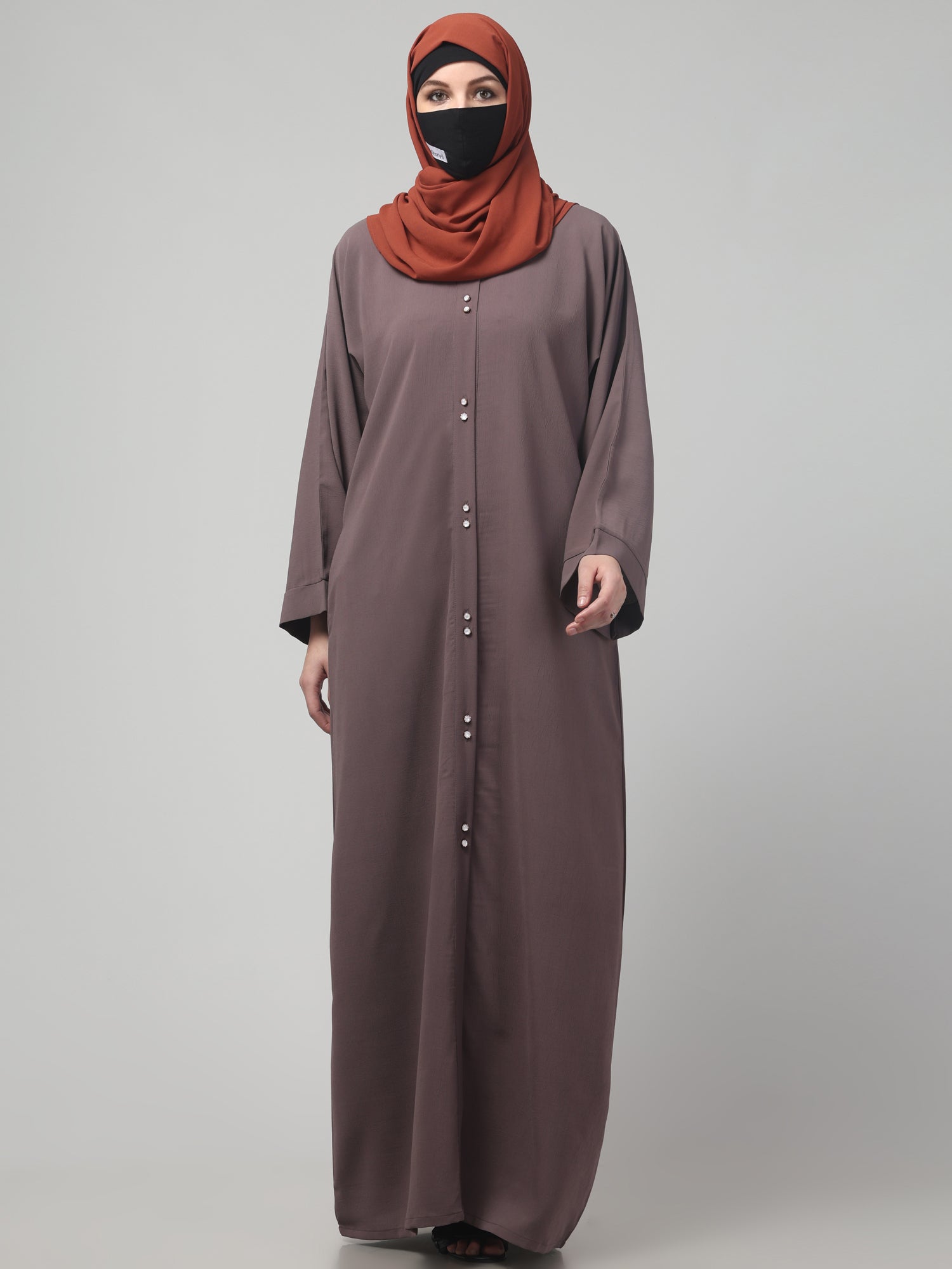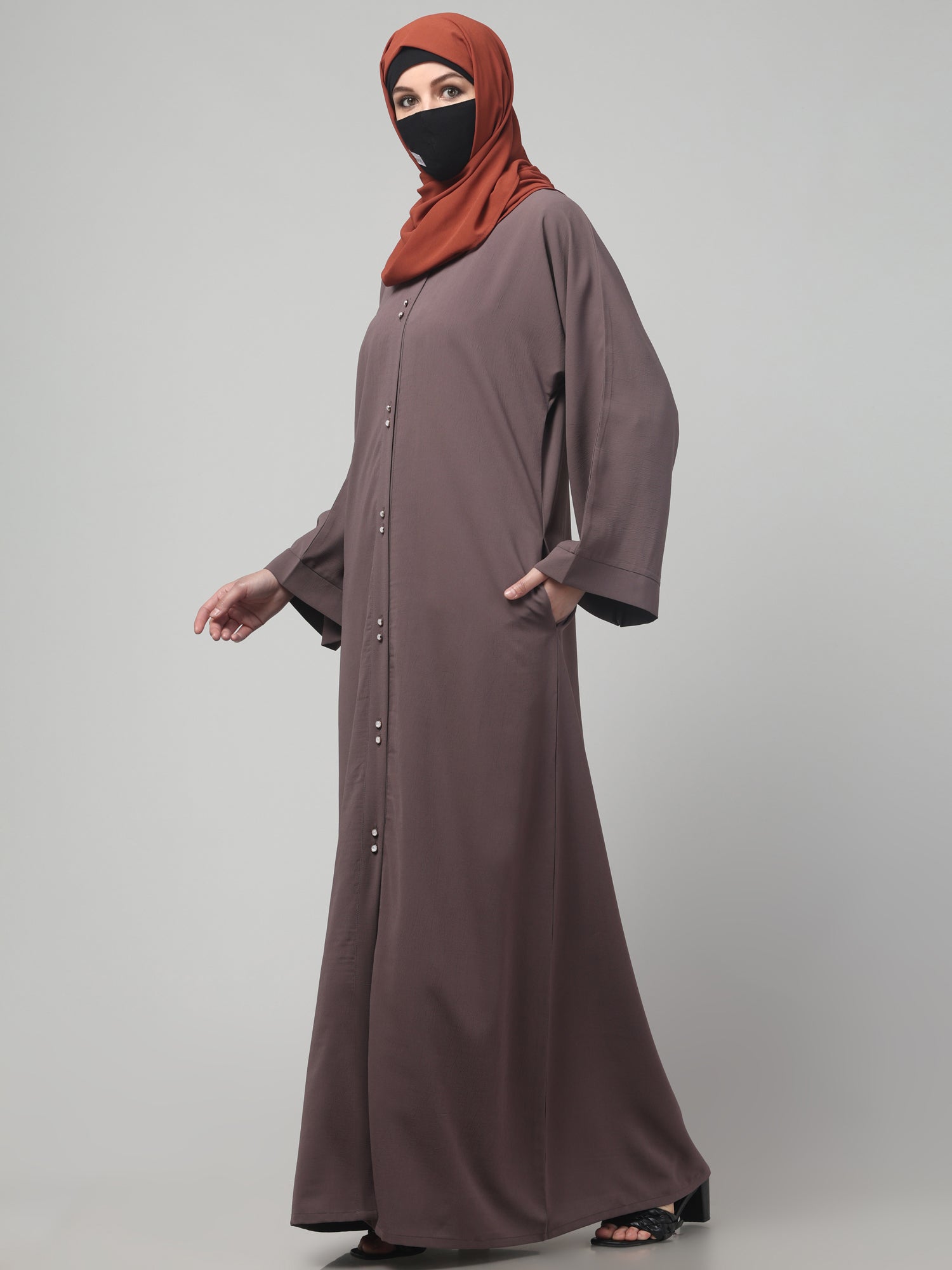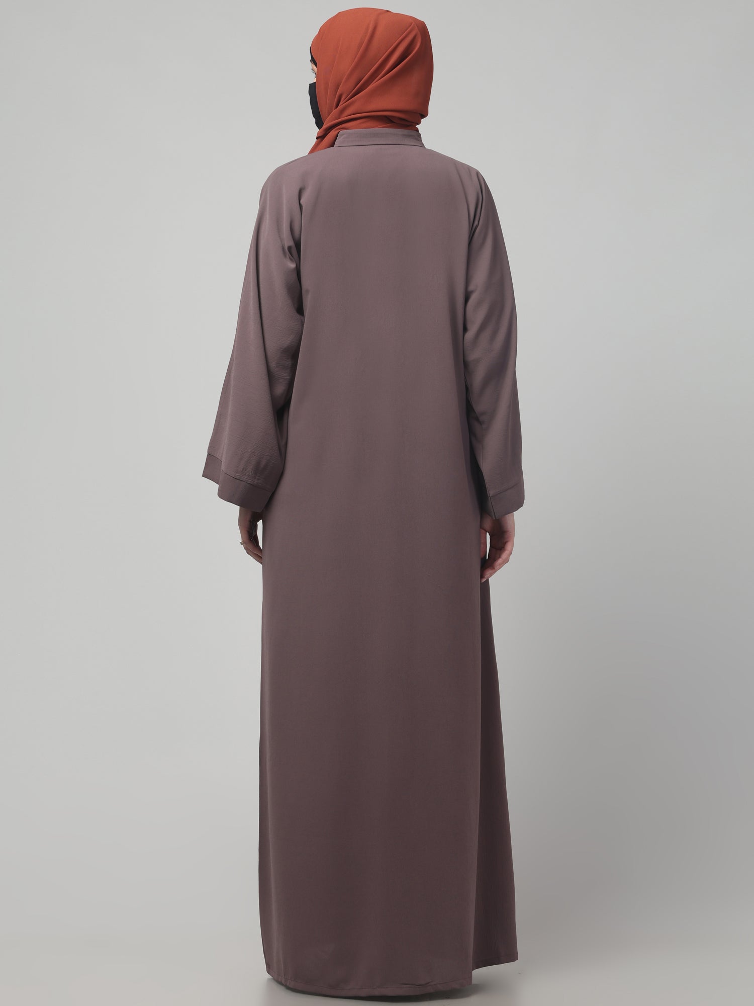 Crafted from CYE Crush Polyester, this Front Open Abaya exudes understated sophistication with its minute crush effect, adding depth and texture to the fabric. Designed for both comfort and style, it features: