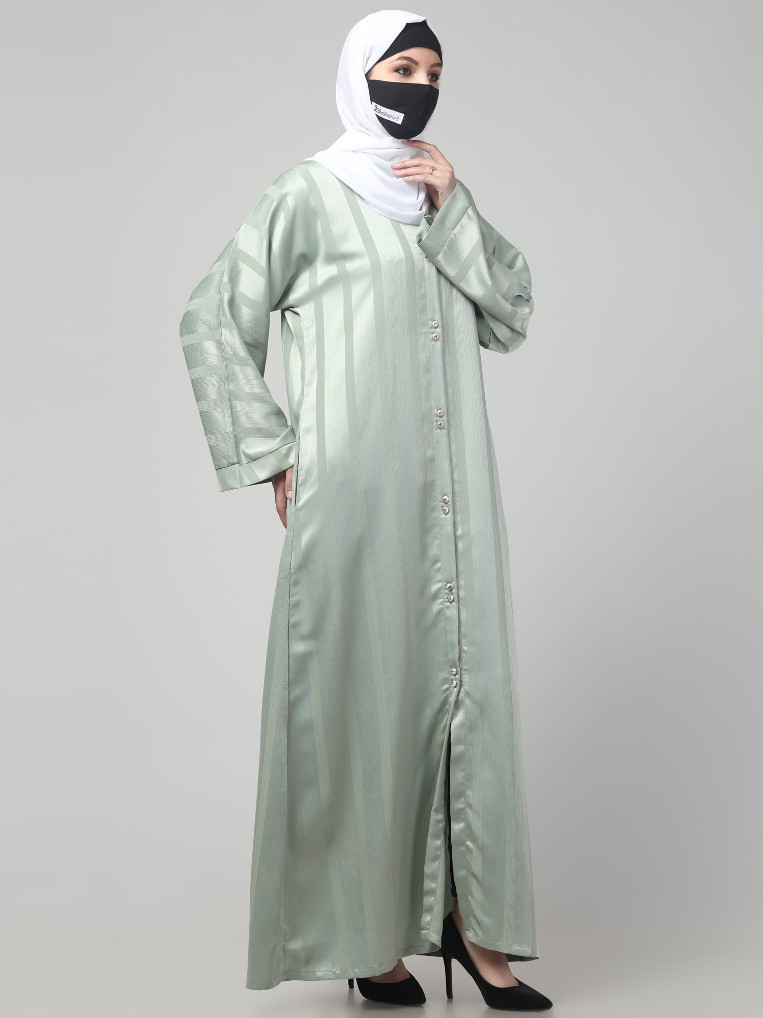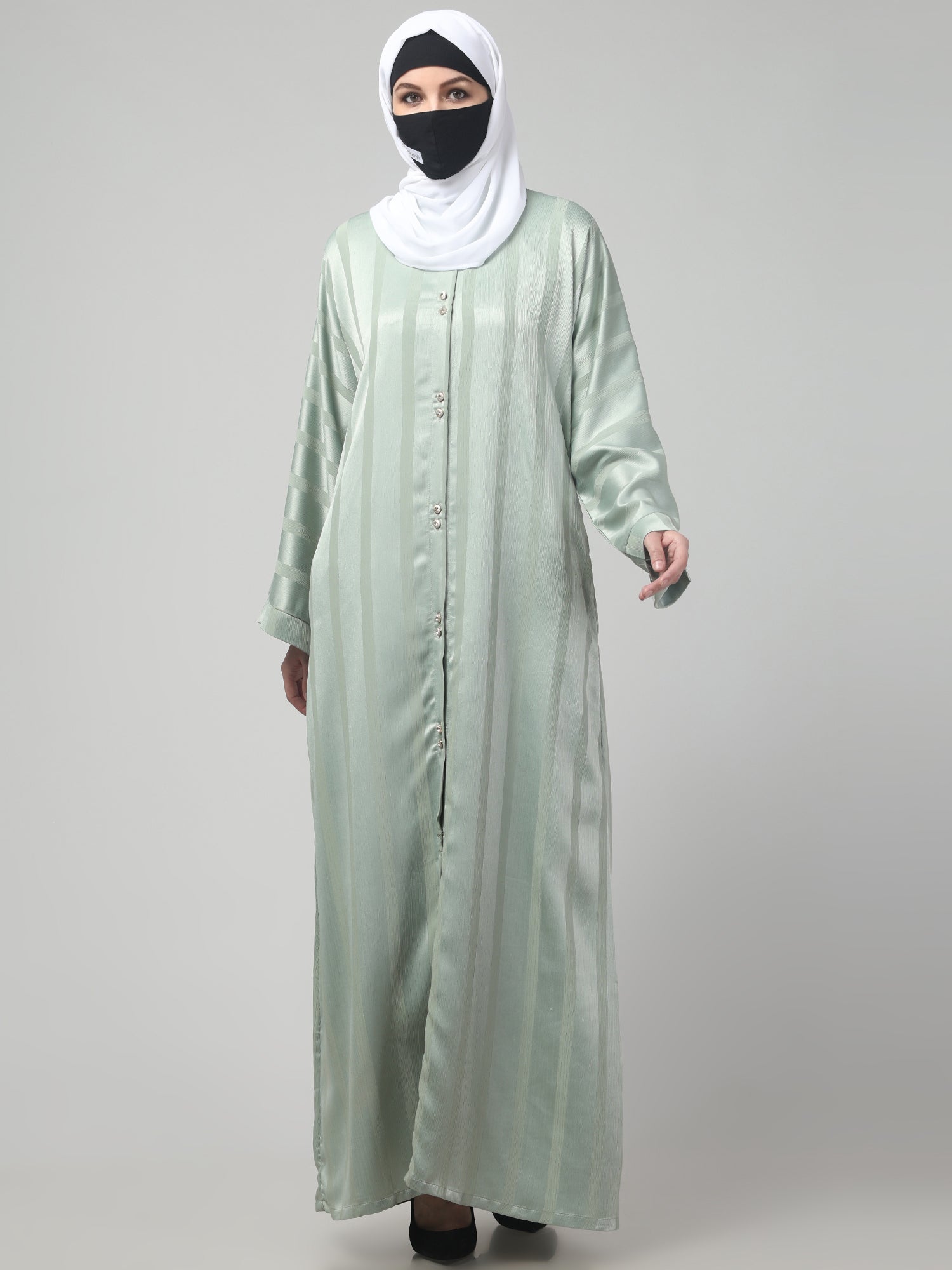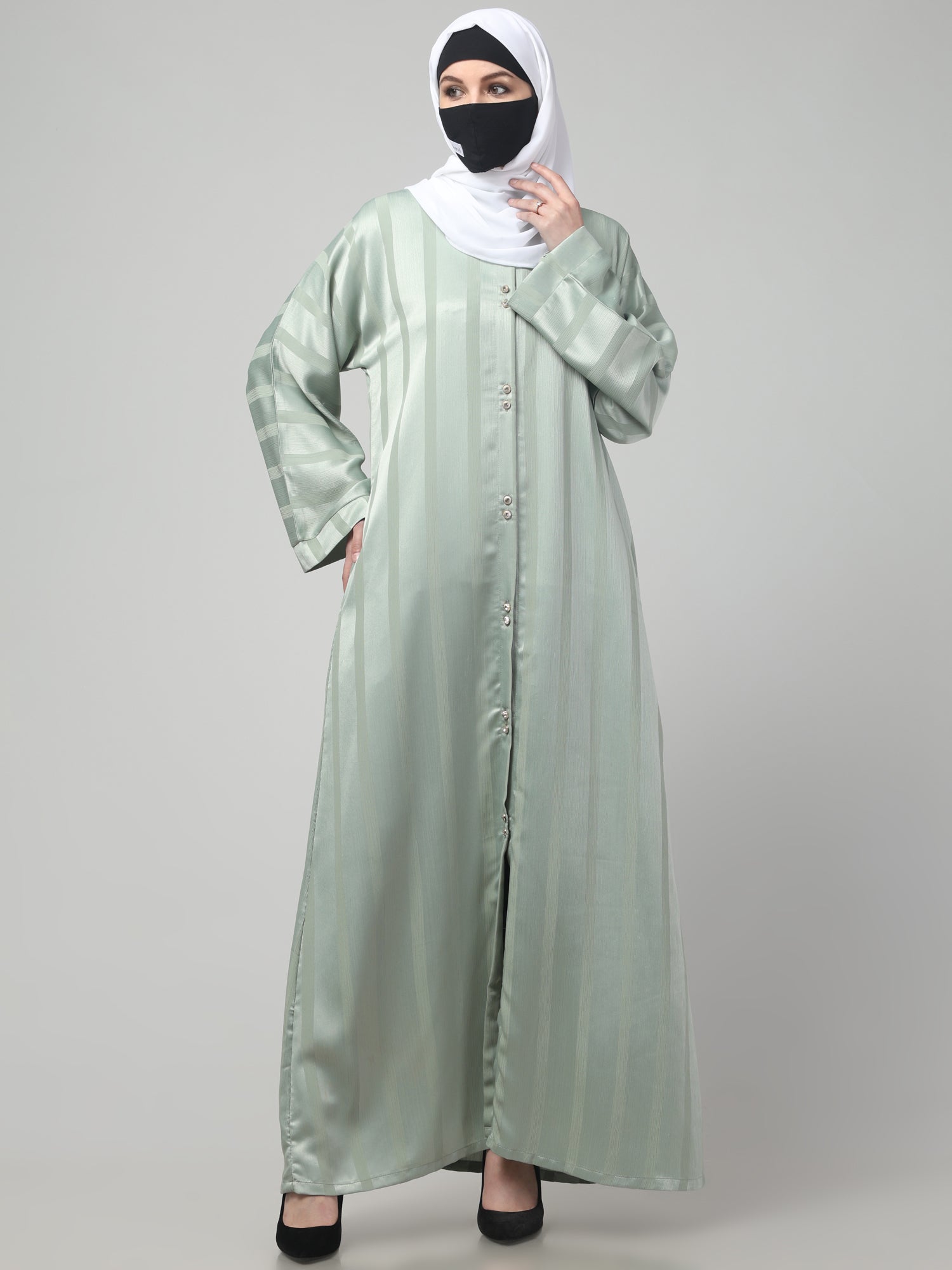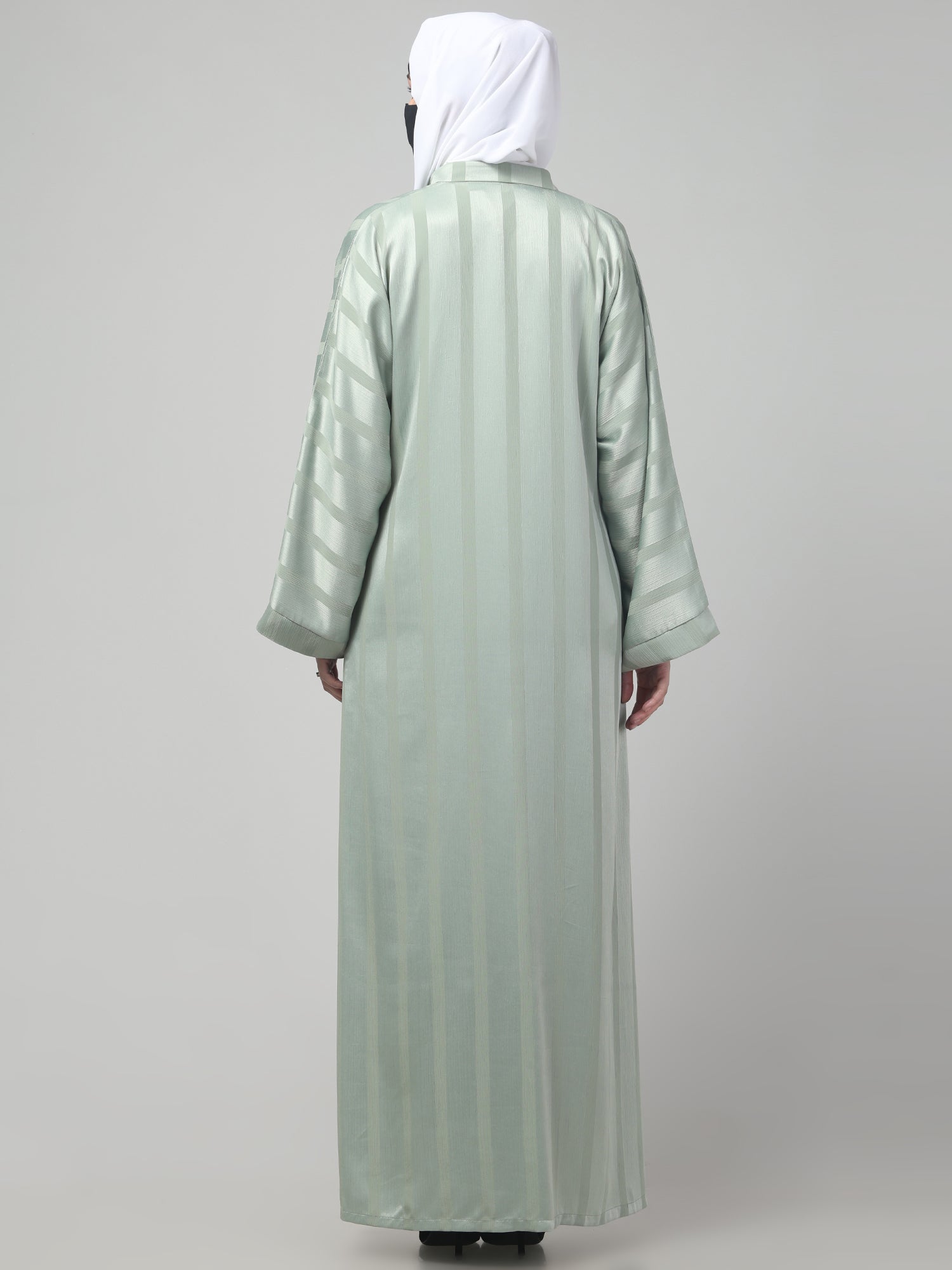 Front Open Abaya in Zoom Pro Fabric – Subtle Stripes & Effortless Grace
