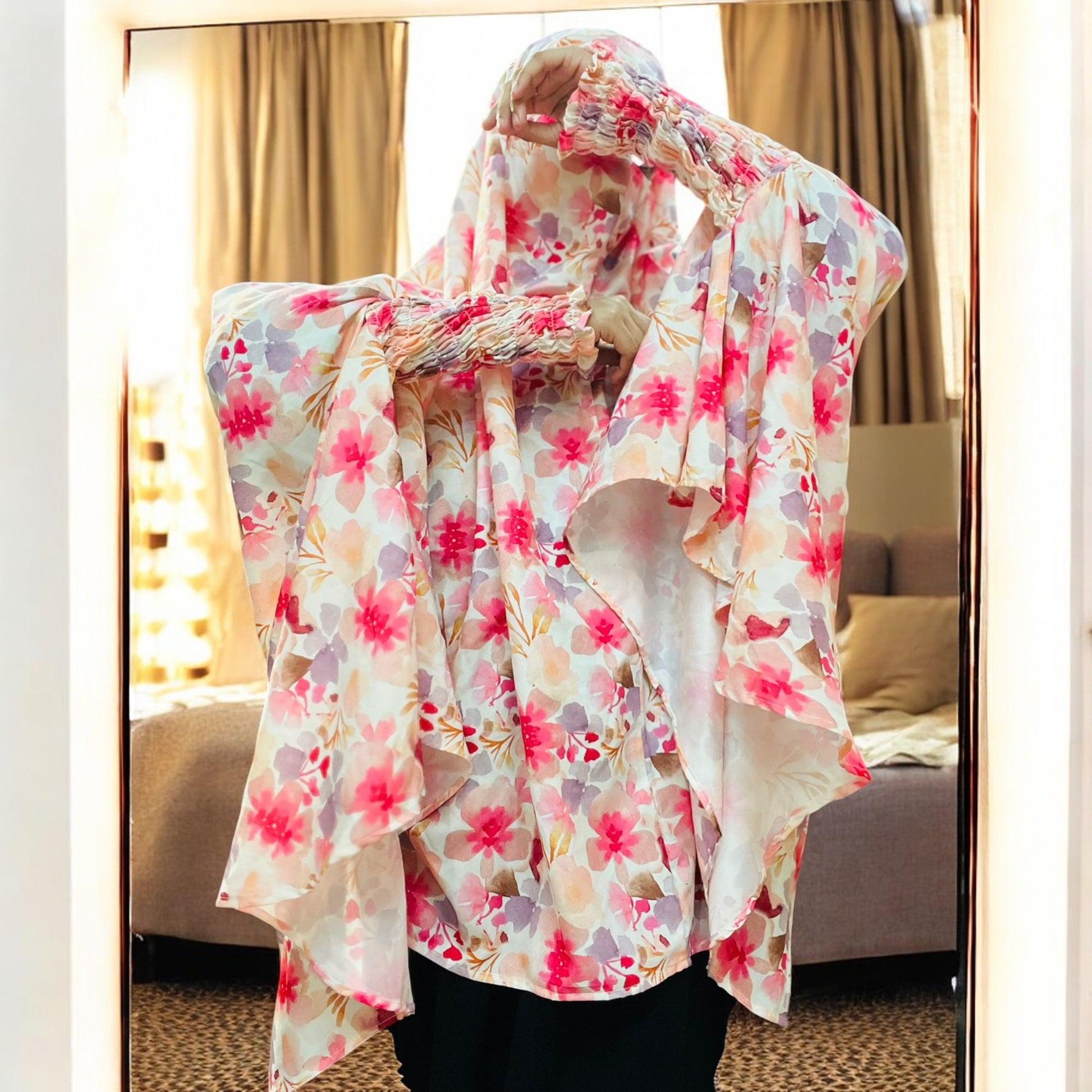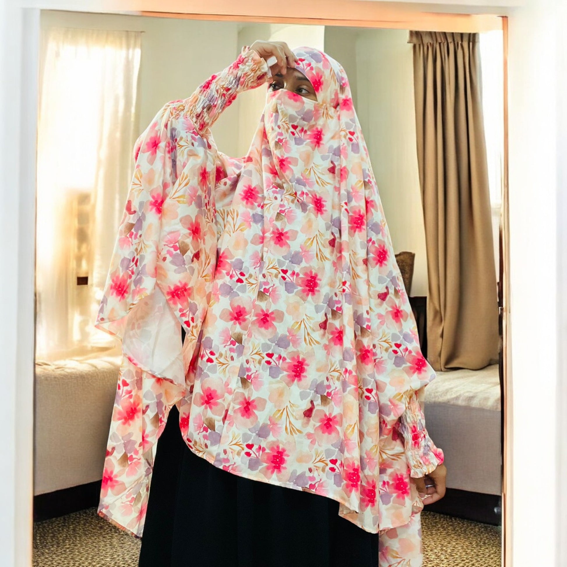 Printed Khimar-Long Prayer Hijab With Attached Mouth-Piece