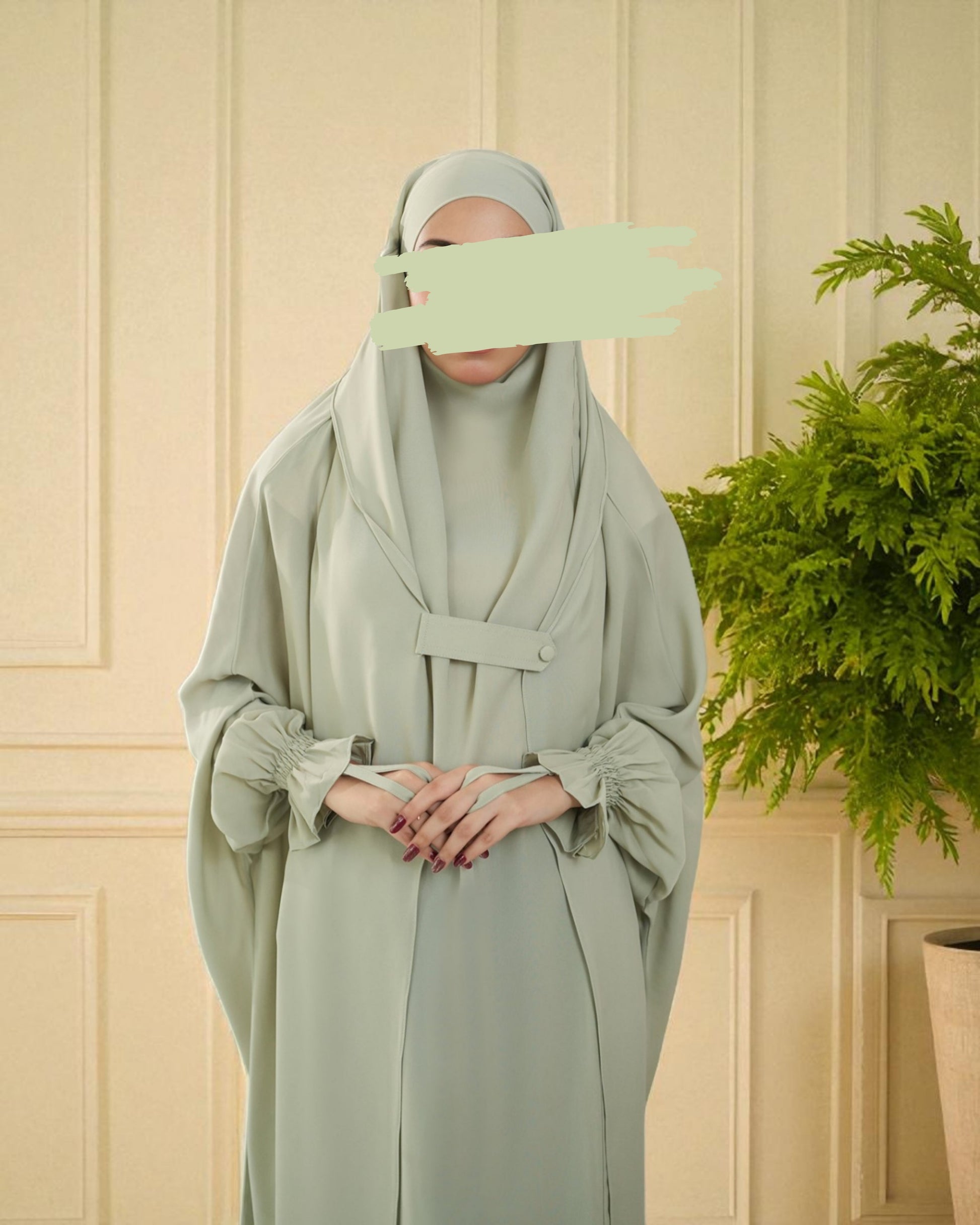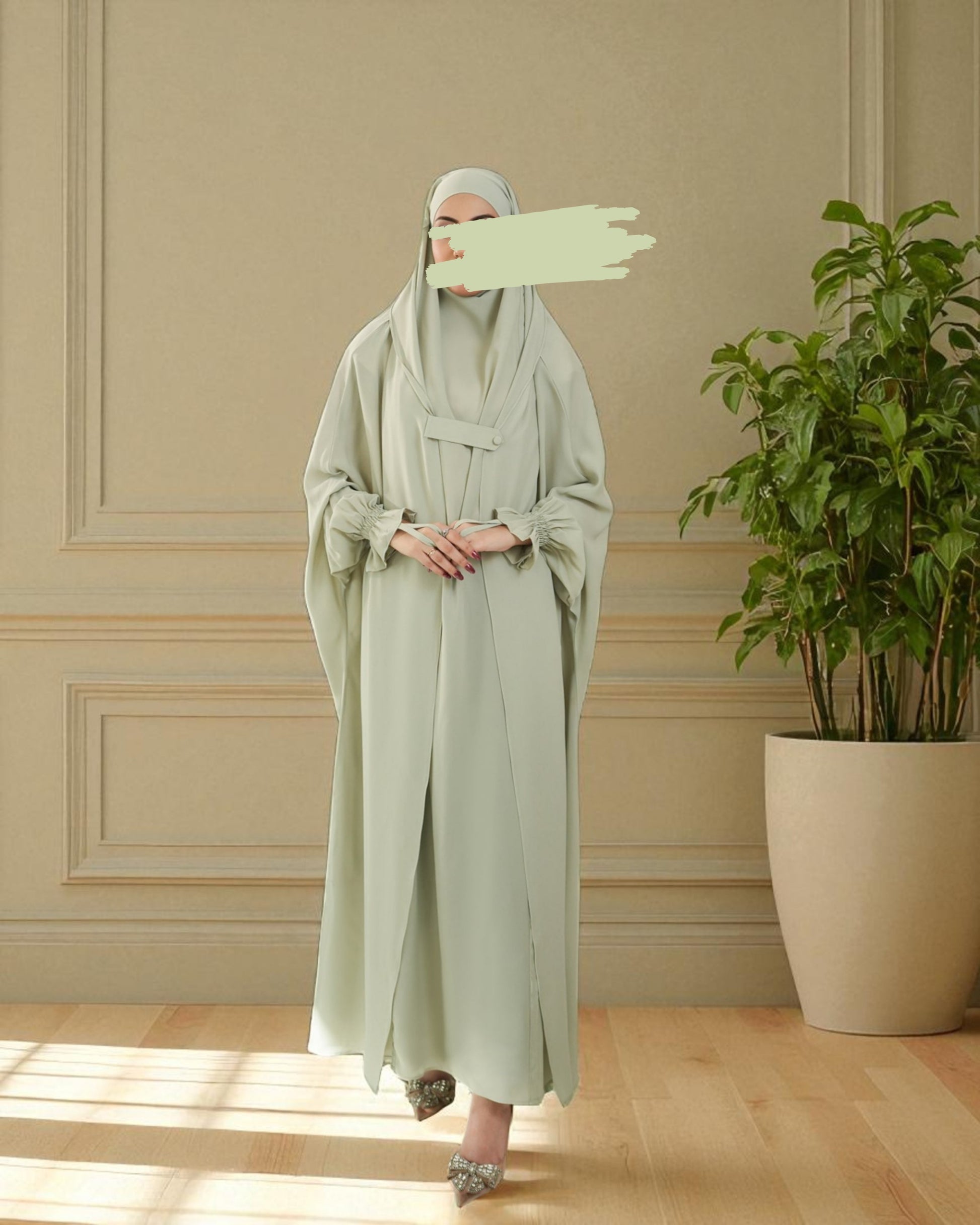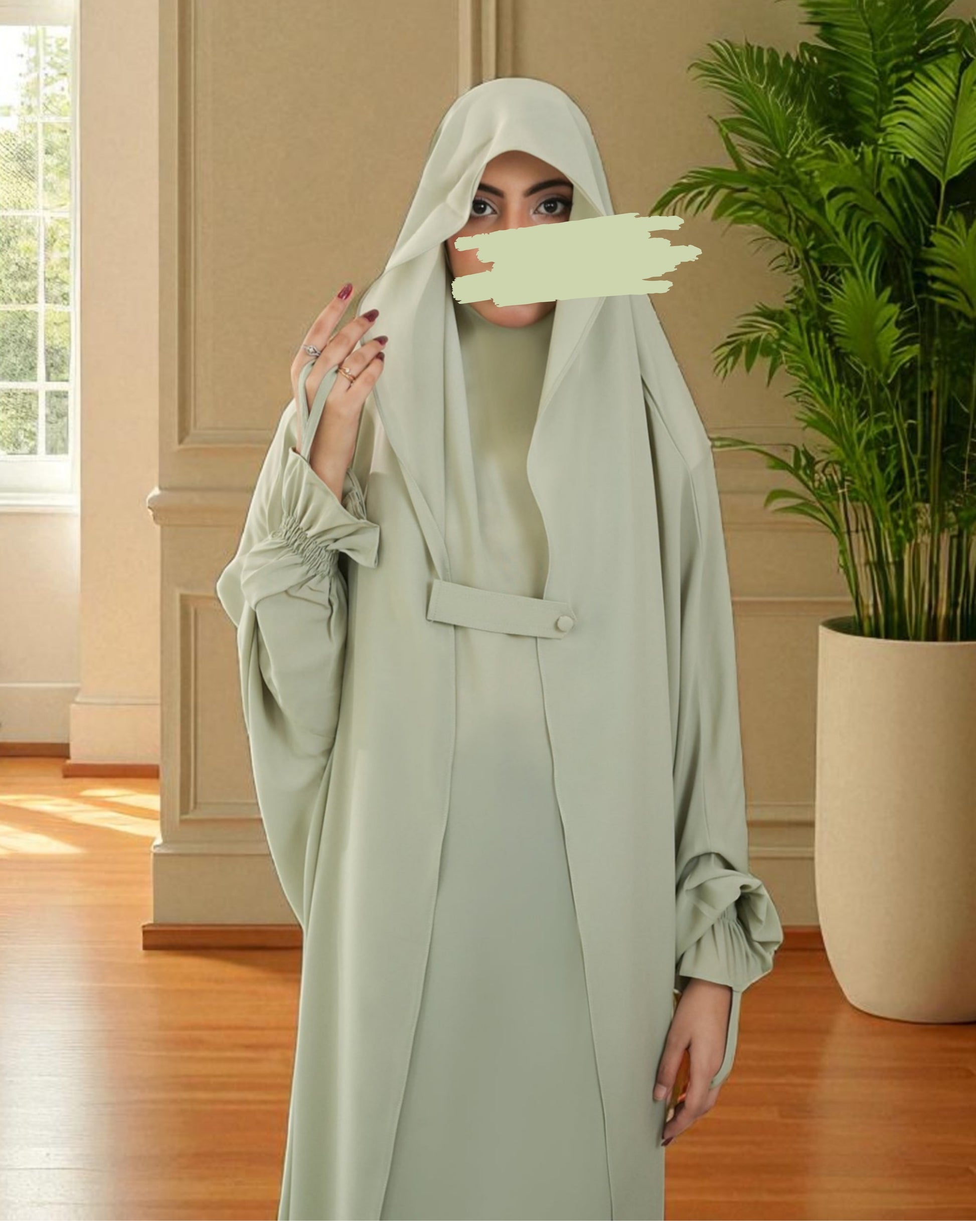 This full-length Saudi jilbab is crafted in soft, breathable Firdaus fabric and features an extra Pardah layer for enhanced modesty. Its loose-fit design allows for comfortable movement, making it ideal for Umrah, prayer, or daily wear. Elasticated sleeves ensure a secure yet flexible fit, combining style and function effortlessly. A perfect balance of elegance and everyday practicality.