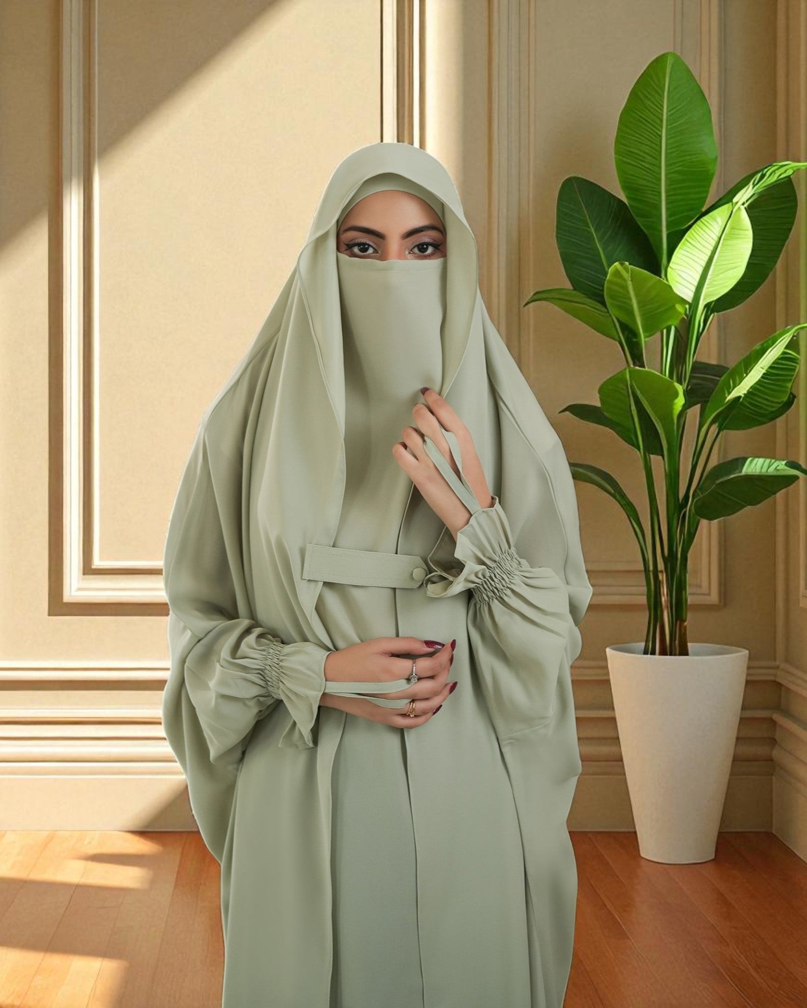 Full-Length Saudi Jilbab in Firdaus Fabric with Extra Pardah Layer, Elastic Sleeves & Loose Fit