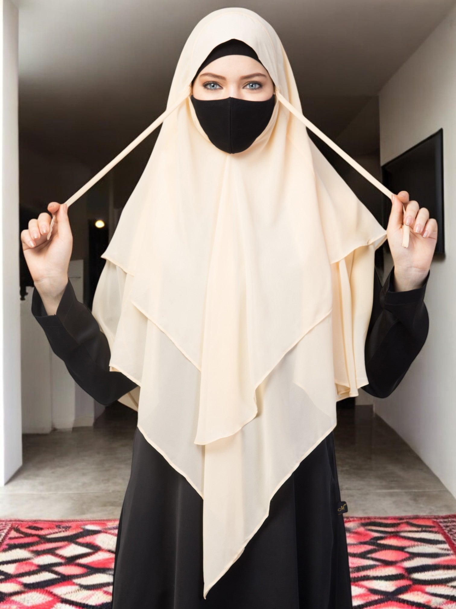 Multi Layered- Triangular Instant Hijab-Khimar In Premium Georgette Fabric