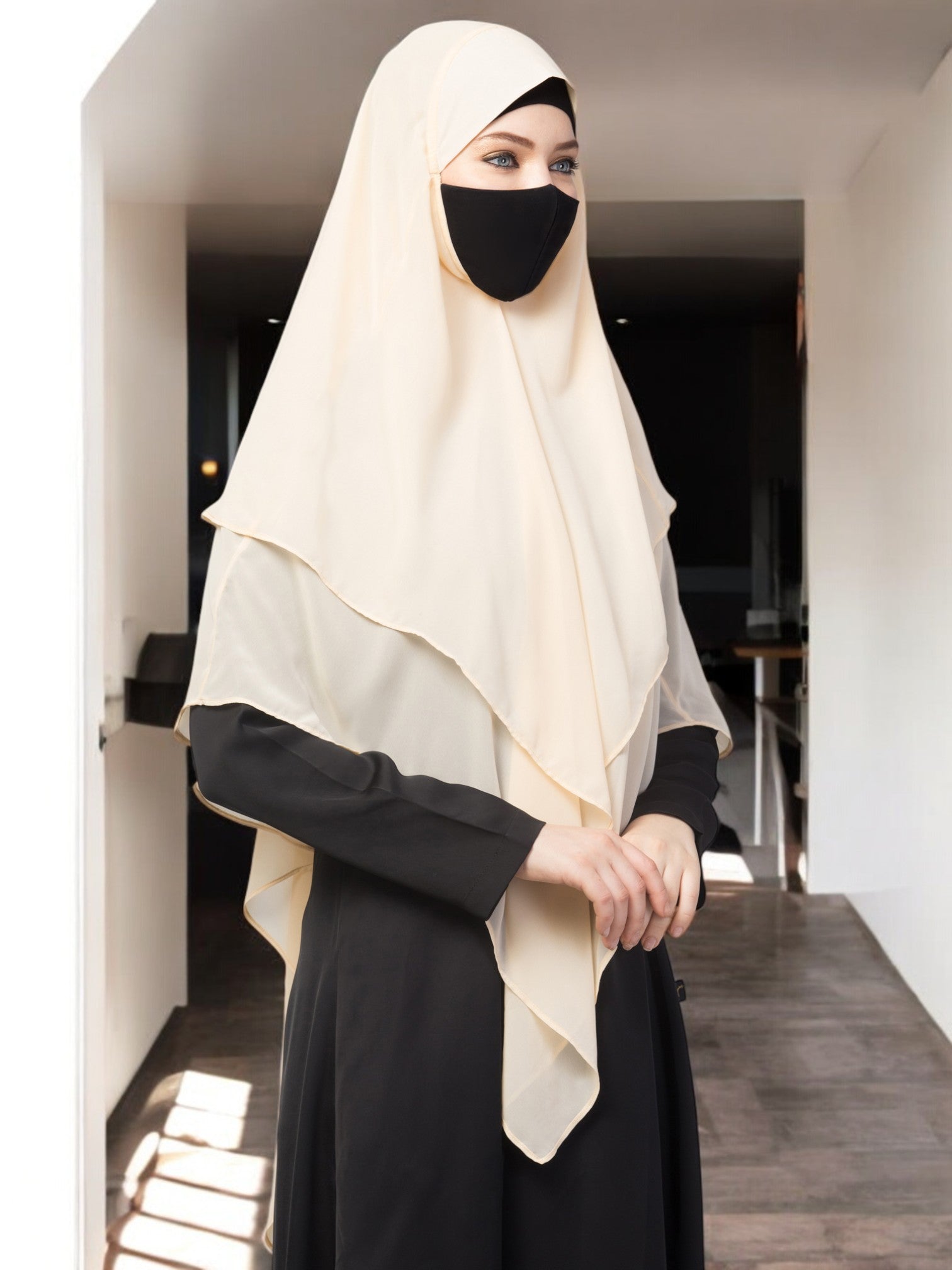 This beautiful khimar in layers is made of a high-quality georgette that is ideal for both hot and cold weather.